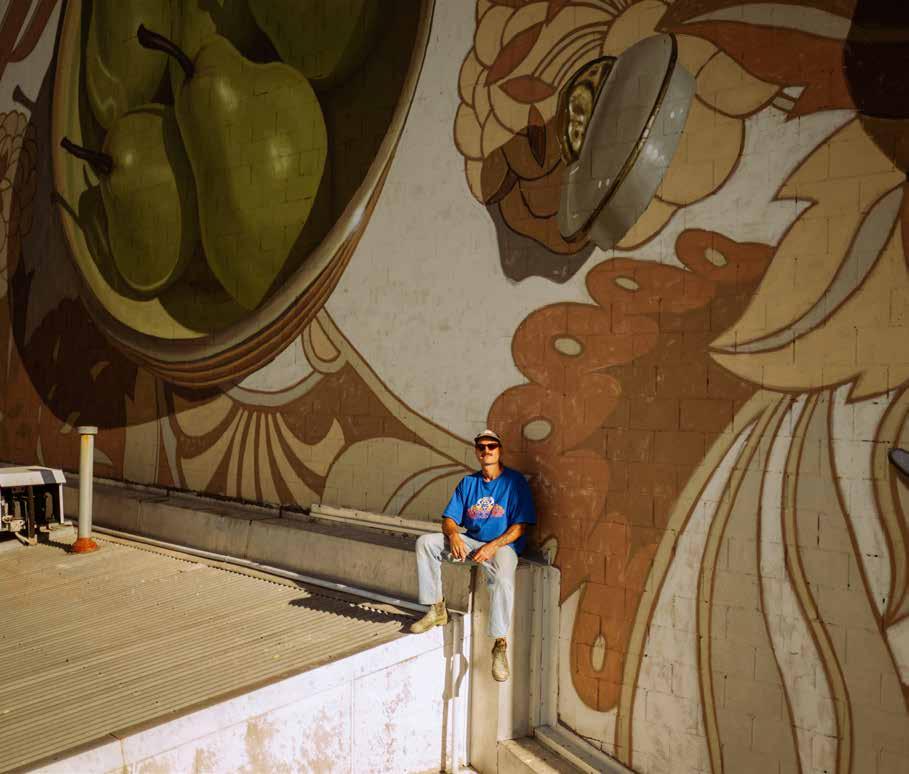 The New Zealand-born former graphic designer says he was drawn to murals because of both the scale and the way it transforms a space. He also loves getting out of the studio and into the streets, where he really enjoys engaging with those who stop for a stickybeak.