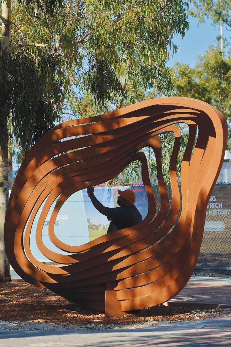 The site holds the memory of footprints as people moved across this land for thousands of years. It was on a path taken by the Noongar People following the lake systems north to south. From Doondalup (Joondalup) through Galup(Lake Monger), they would gather at the Subiaco Oval site, continuing through the hospital site to KarraKatta(Kings Park) then DerballYerrigan(Swan River).