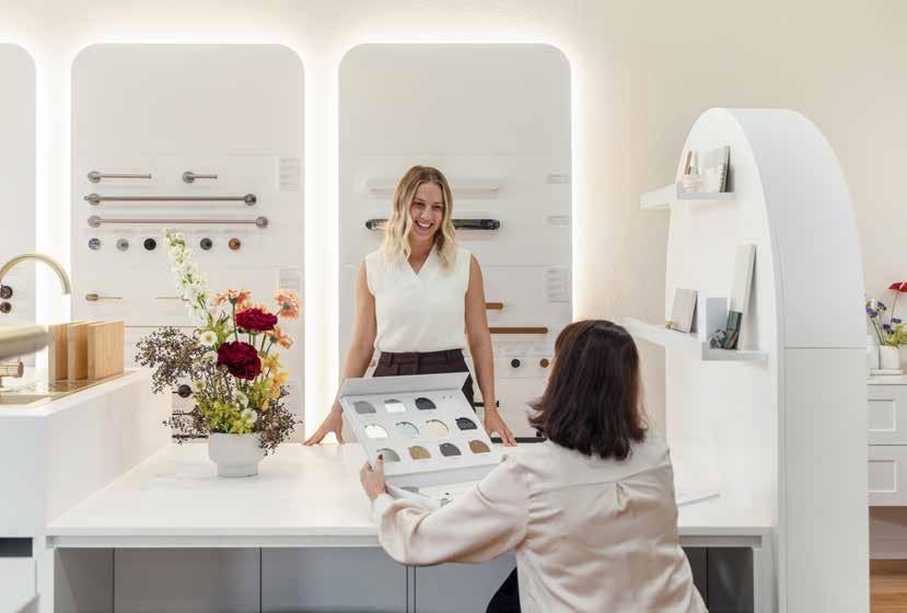 “Seeing colours and feeling textures is a natural starting point, but it’s also about understanding functionality. It’s one thing to look online, but another to physically open and close a bifold door to experience how it moves or stand at different kitchen benches to see which height suits you best.”
