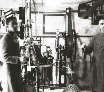 The bottle was turned upside down inside the machine. By weighing the bottle and pressing the pedal at the bottom, the spout of the bottle opened, allowing water and carbon dioxide to enter at a great pressure of 6.5 atmospheres. Filling, due to the enormous pressure, was divided into two