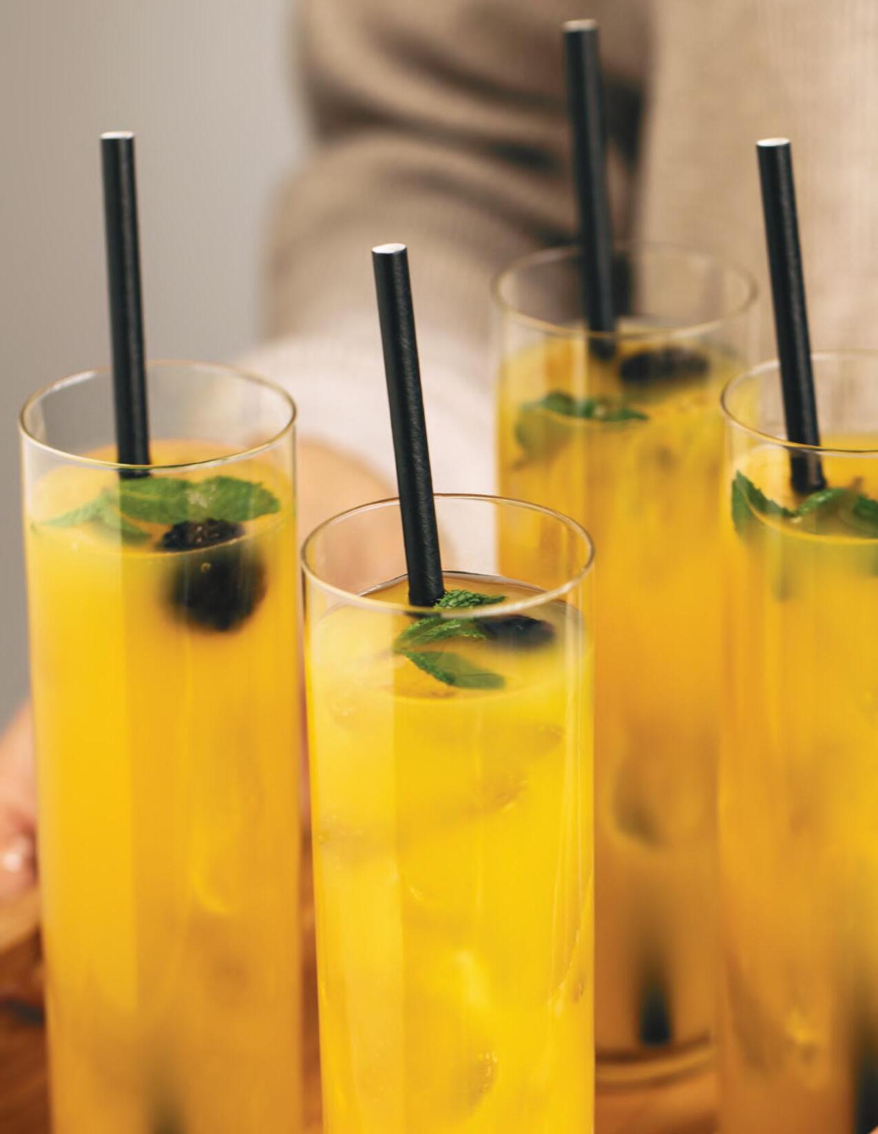 Les boissons froides comme le café glacé, les boissons gazeuses, les boissons et laits frappés épais et les cocktails, tout comme les boissons chaudes comme les lattés et les cappuccinos.