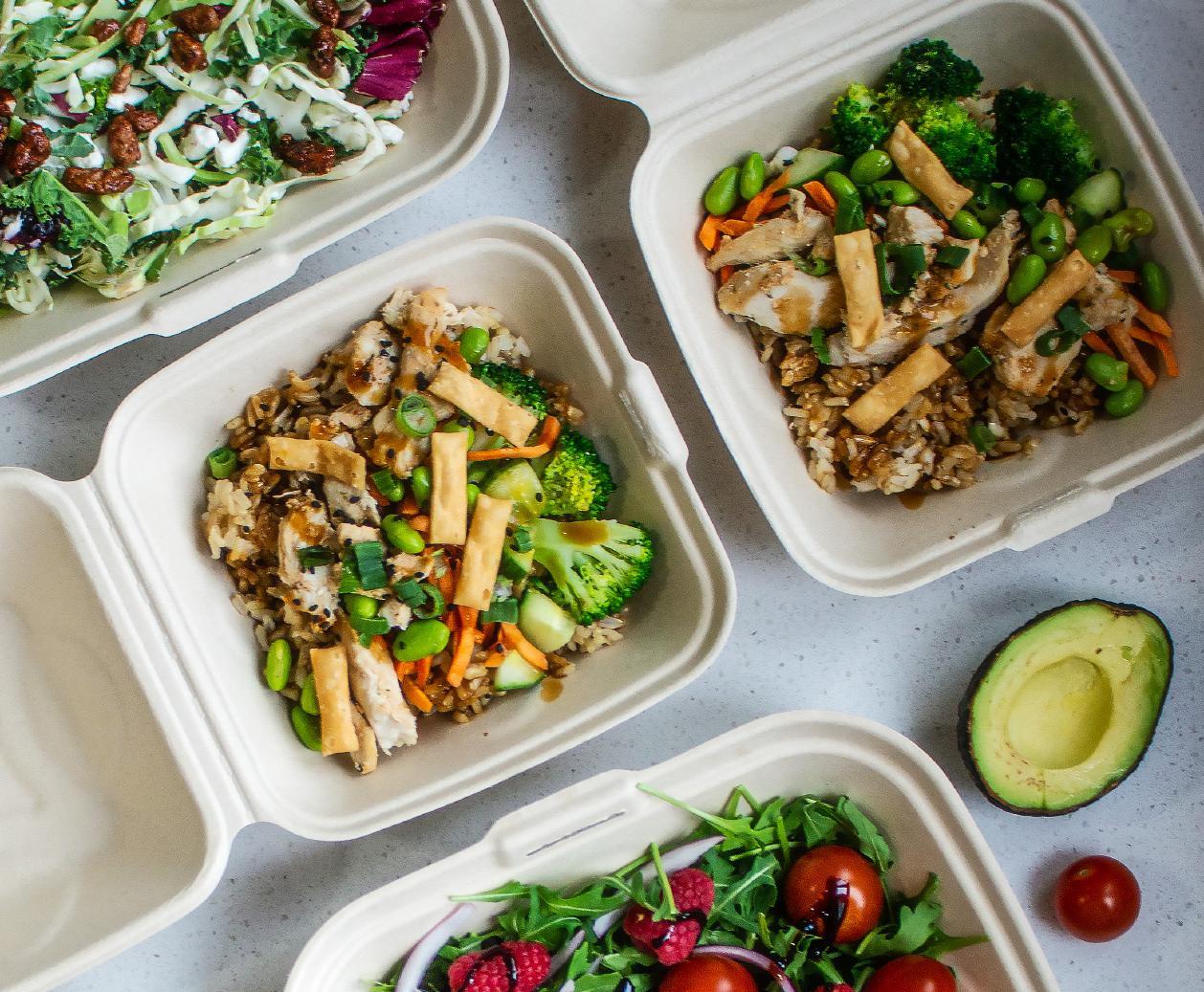 Contenant à charnière carré 8 po en bagasse mixte 3 compartiments
