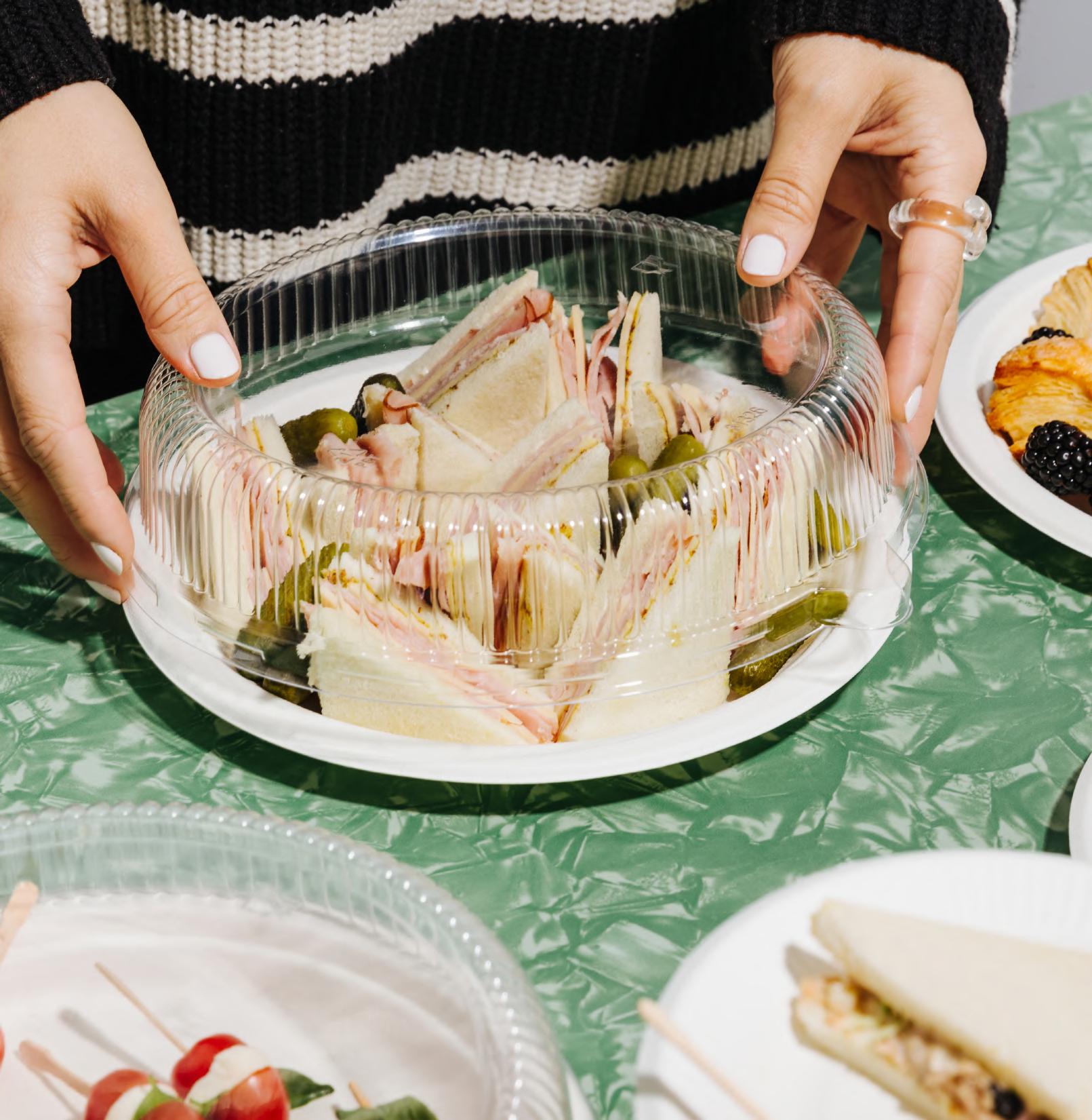 Le service de mets chauds ou froids tels que des salades, des bols de grains, des pâtes et des plats principaux. Idéal pour les restaurants, les cafés, les services traiteur et les établissements proposant des plats à emporter à la recherche d'une performance compostable et d'une utilisation polyvalente à différentes températures.