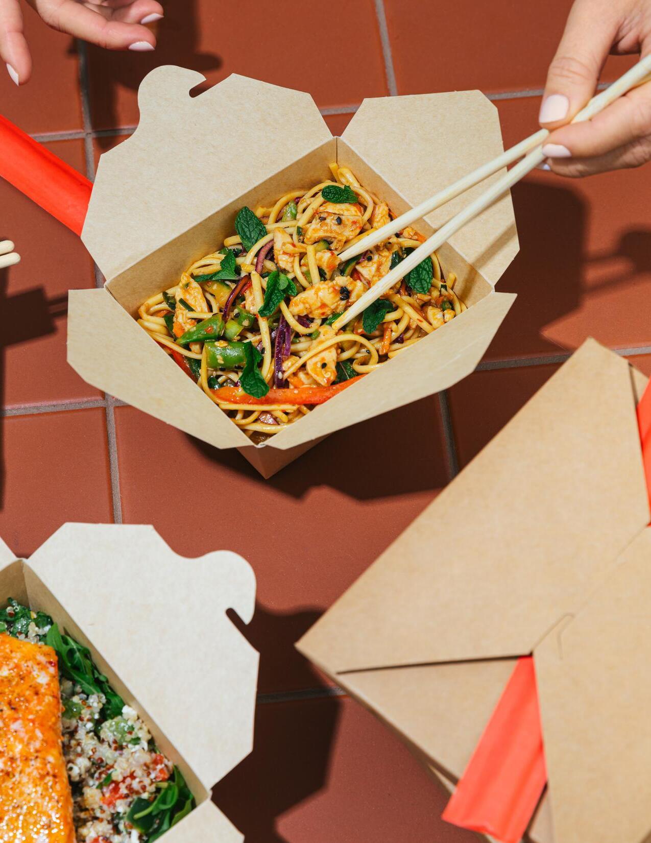 Premium take out boxes that are heat-ready, leak-resistant, and fully BPI-certified compostable, making them ideal for high-performance food service.