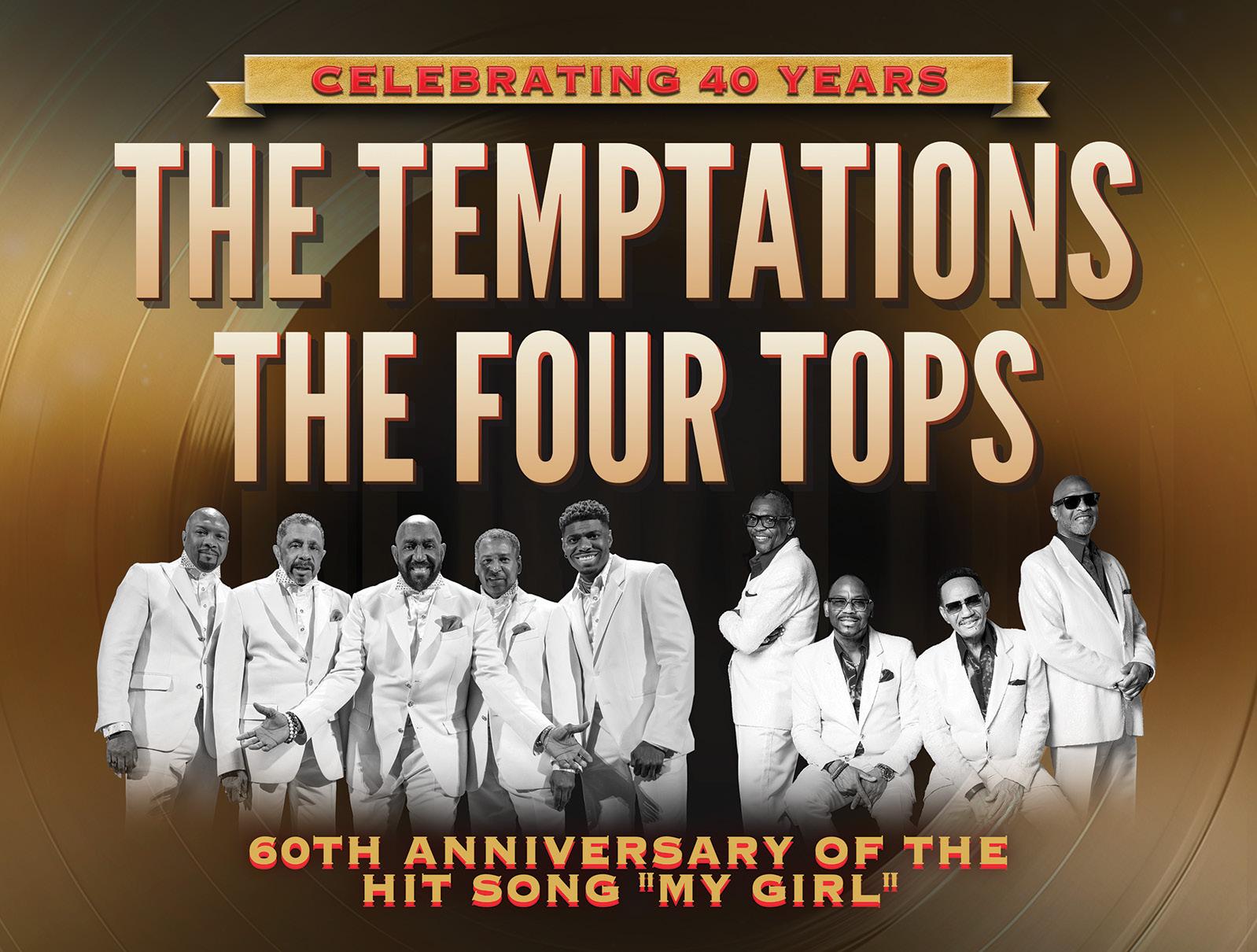 The Temptations , often referred to as American music royalty, are revered for their phenomenal catalog of music and prolific career. The hits are all too familiar: “My Girl," “Just My Imagination (Running Away with Me)," “Ain't Too Proud to Beg," “Papa Was a Rollin' Stone," and more. Their Motown Records brothers-in-song, The Four Tops , are no less music royalty, with such HollandDozier-Holland penned masterpieces as “Baby I Need Your Loving," “I Can't Help Myself (Sugar Pie, Honey Bunch)," and “It's The Same Old Song," among many.