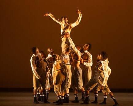 Streams is an abstract exploration of bodies in space, danced to a percussion score by Miloslav Kabelac. Alvin Ailey’s highly structured yet fluid compilation of solos, duets, and group choreography reflects the formal, meditative mood of Kabelac’s music. While there is no narrative, the movement and music arouse distinct thoughts and feelings, evoking images and sensations inspired by bodies of water—from a gentle brook to a turbulent ocean—that correlate to the changing tides within us. Walter Terry of The Saturday Review described Streams as “a stunning group work built chiefly on diagonal lines and evoking the title in abstract form through varying speeds, eddyings, flowings, racings, and floatings, all related to moods of jubilance, sadness, acceptance, and glee,” while The New York Times wrote, “It exposes its dancers and their technique in ways I find often heroic and beautiful.”