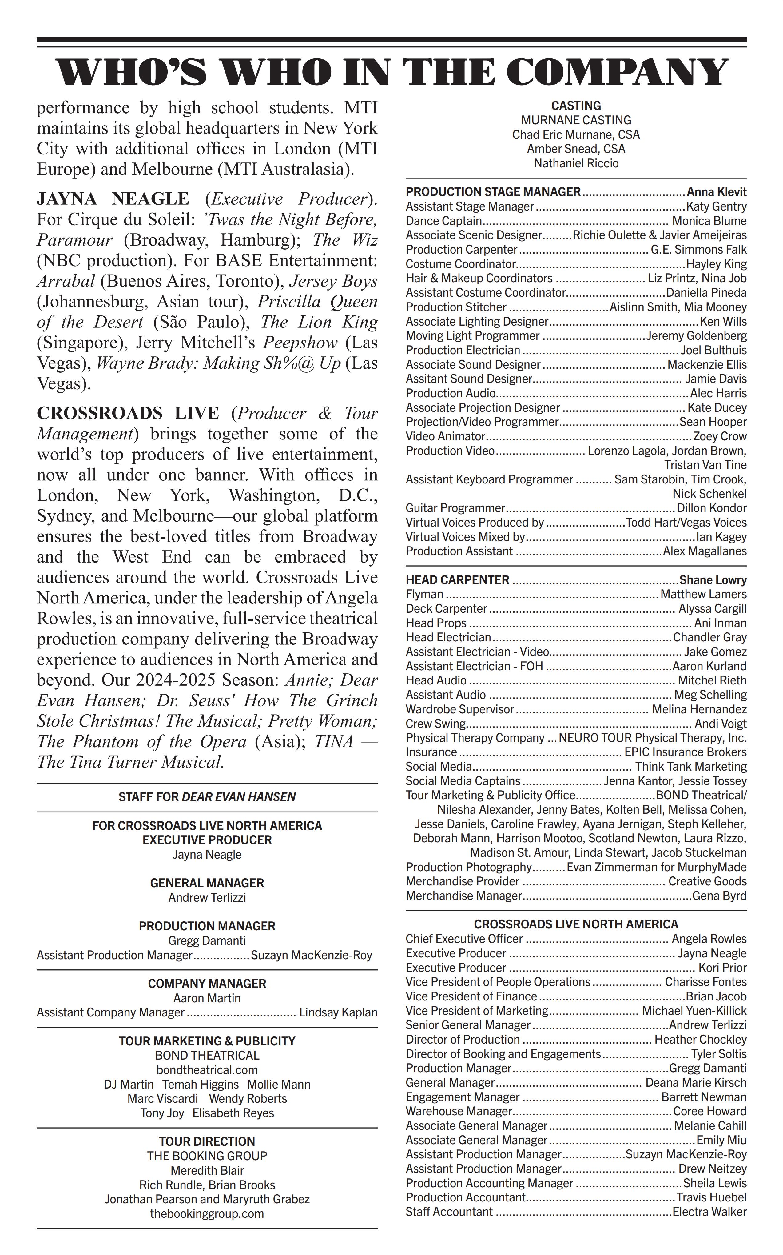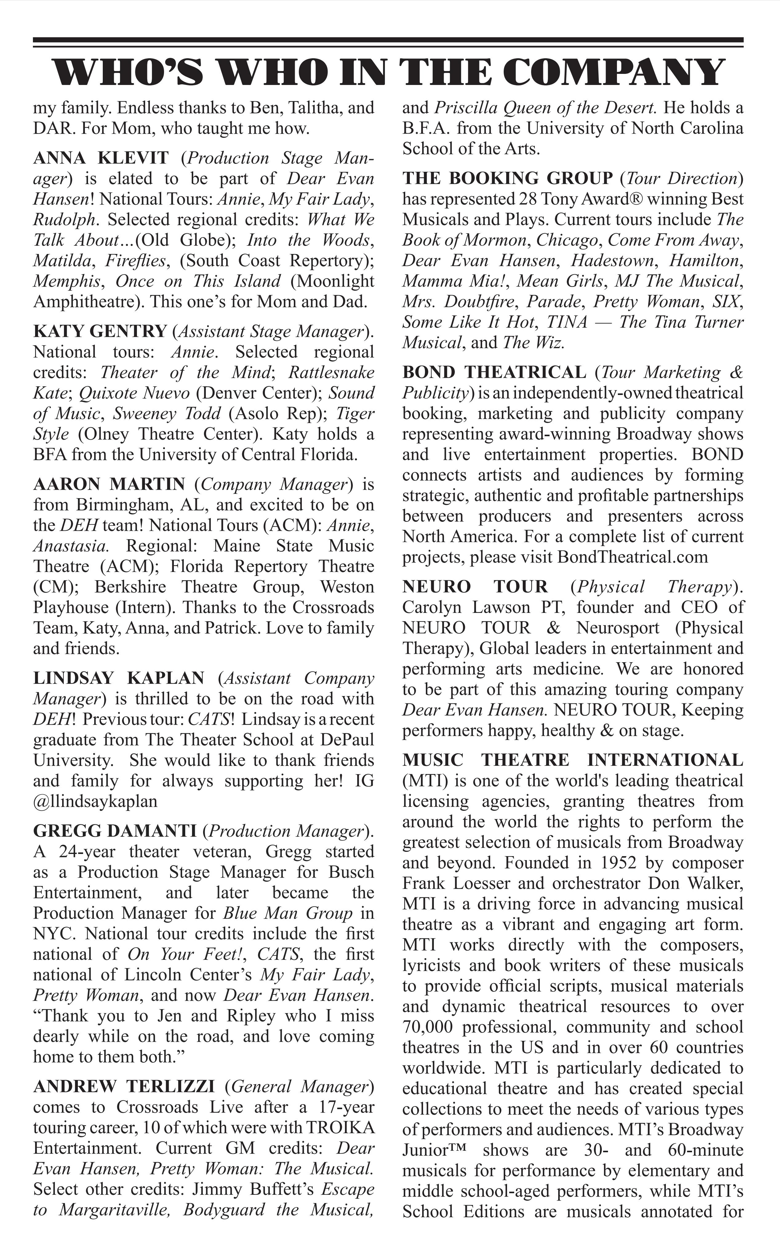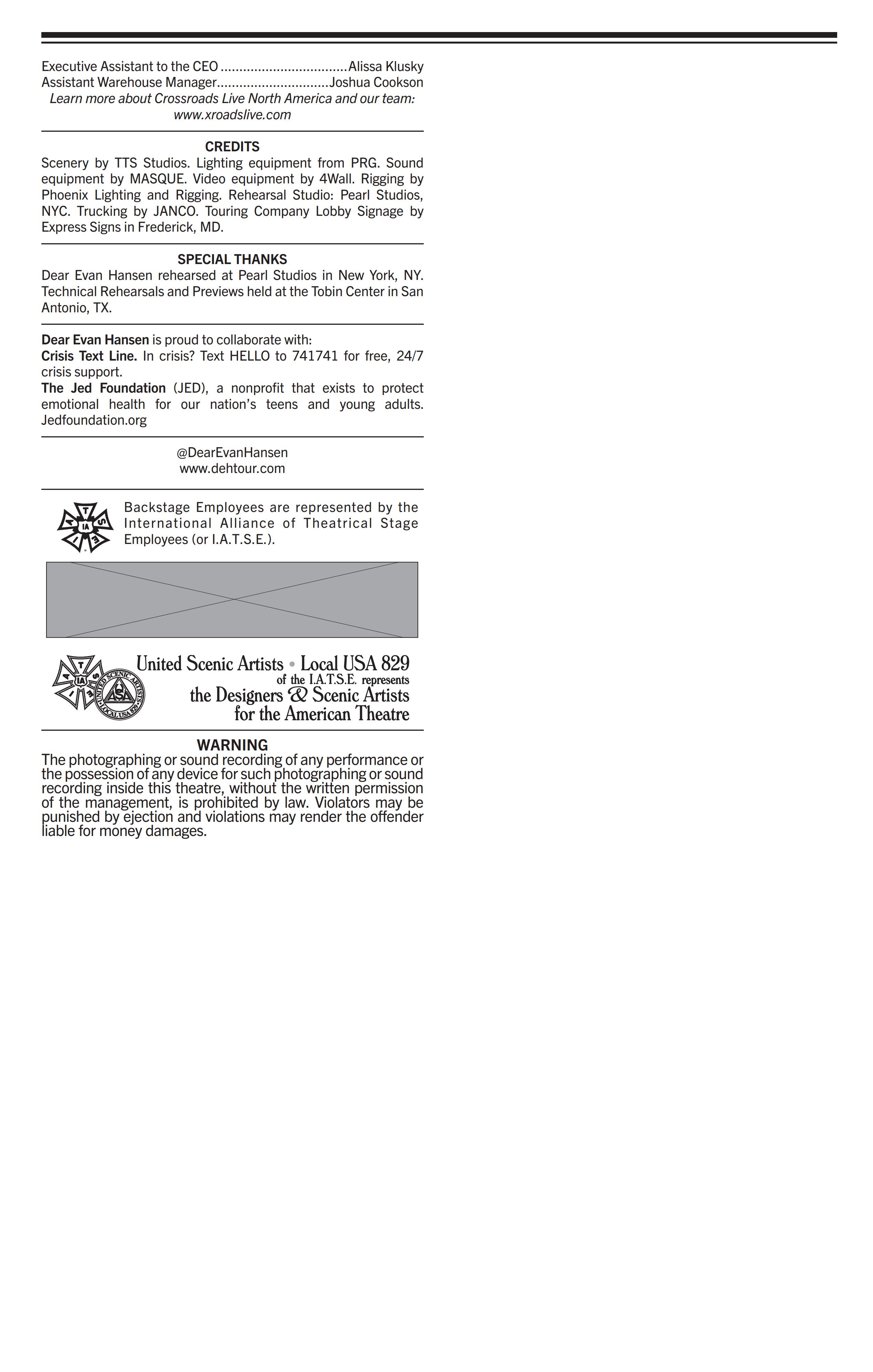 • All patrons MUST have a ticket to enter a performance regardless of age.