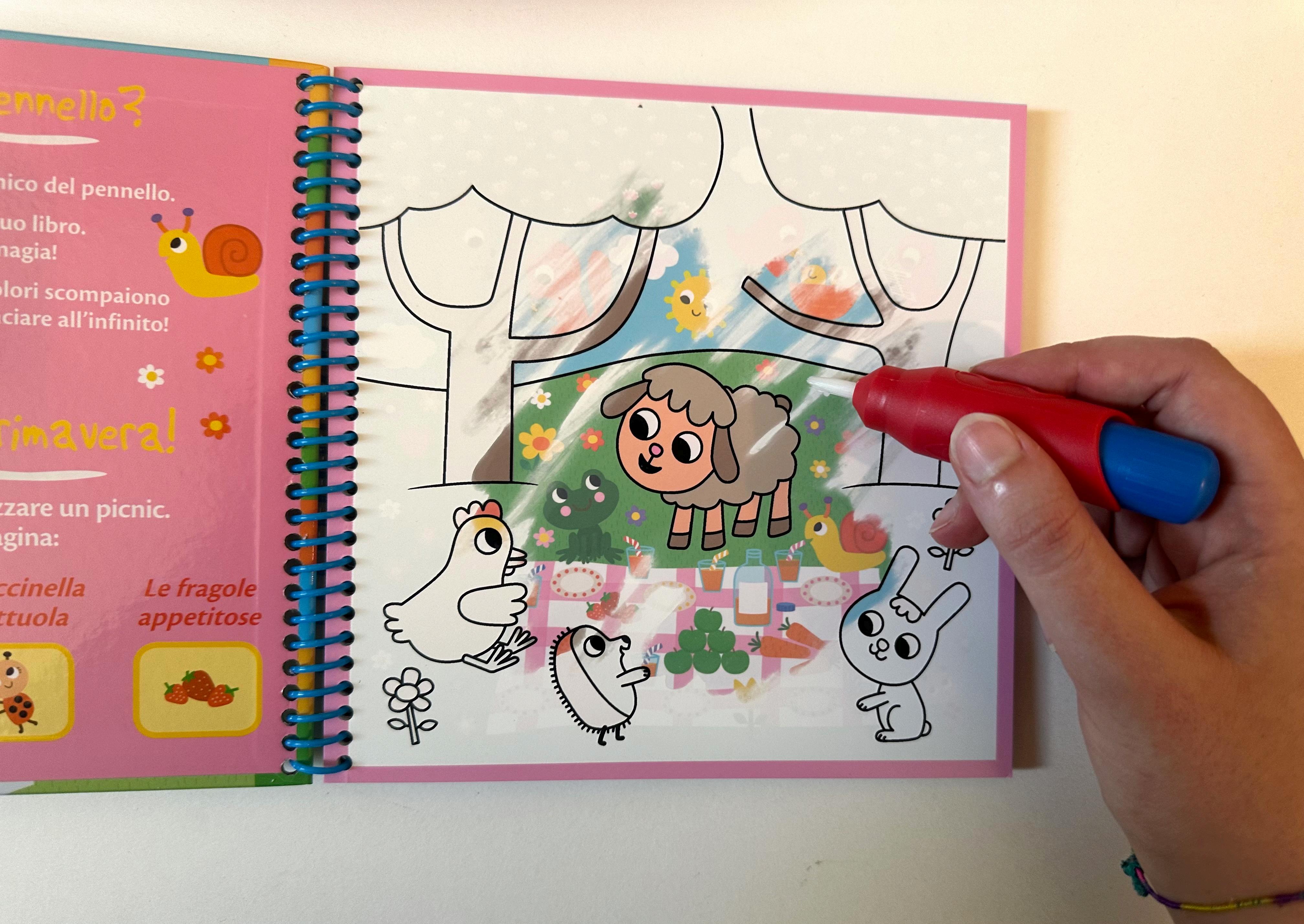Dipingi con l’acqua e i colori appariranno. Aspetta che il disegno asciughi e ricomincia all’infinito!