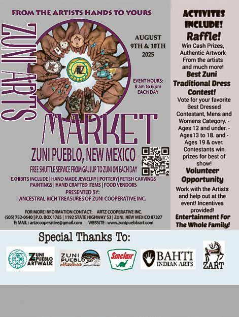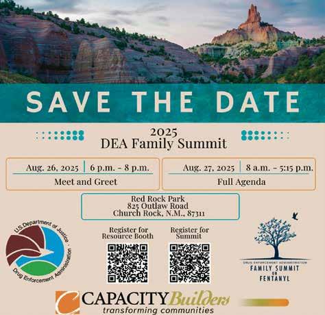 to address criminal complaints?” There are many victims out there. Representatives from the Navajo Nation Police, McKinley County Sheriff’s Office, New Mexico State Police, Bureau of Indian Affairs, and attorney offices from both the Navajo Nation and the State of New Mexico will be present to answer these complex questions. Bernalillo County, through “Keep NM Alive” initiative, is sponsoring lunch, and Navajoowned Nizhoni Fusion Tea Co. will be in attendance. Navajo Nation Vice President Richelle Montoya will deliver a welcome address, and the Native Women Warriors will present the colors. Featured artist Irving Bahe, who created the beautiful ceremonial mural downtown, is the designer of their conference booklets and t-shirts. The first 100 registered participants will receive a free t-shirt.