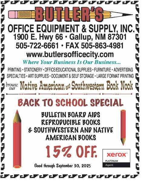 Saturday August 30 9am - 4pm, $5 Open Sew & Embroidery. Come and use the classroom and work on those unfinished projects or get a jump start for Christmas 2025. Gather and mingle, make some new friends. 104 W. Coal Avenue • 505-722-9414 www.gallupservicemart.com