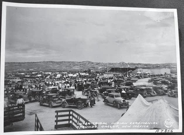 In the February issue of Gallup Journey, the reader was introduced to a number of photos taken by Burton Frasher, of Pomona, California, in 1931, when he came to the Gallup Inter-Tribal Indian Ceremonial. On his return trips in 1935 and 1936, he expanded his subject matter and included scenes of both the grandstand and the exhibit hall (both of which are gone now), and also made trips out to the Navajo, Hopi, Zuni, Acoma, Laguna and Apache reservations and pueblos. His subjects were mostly crafts-people or religious scenes.