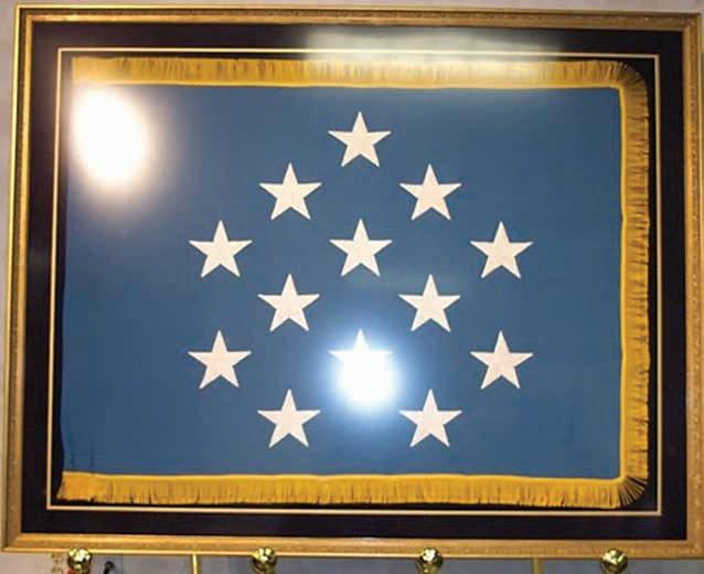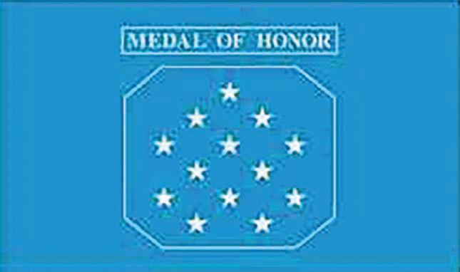 Sgt. Kendall’s design was nearly identical to that of Sarah LeClerc’s of the Institute of Heraldry. LeClerc’s design has the goldfringed around a light blue field with the 13 white fivepointed stars and did not include the words “Medal of Honor” as Kendall’s flag did.