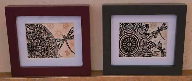 “One of the biggest influences in my work is traditional pottery designs,” Leanne shared, “pottery designs are about prayers and growth. You can see symbolism and a message in the pottery. In my art, the flowers and lines have significant meaning”, Leanne explained, “Once people pass away, they come back as an animal or insect and those are the expectations I have in my drawings. Hummingbirds, dragonflies, and butterflies represent the people I looked up to. The ones I turned to for strength as I worked through my healing. I know that I wasn't alone going through the journey because spiritually I connected those people into my drawing.” That spiritual connection extends to the community, “knowing that generational trauma is rooted in our culture helped me feel supported by those who came before me. When I draw, I’m not just healing myself, I’m