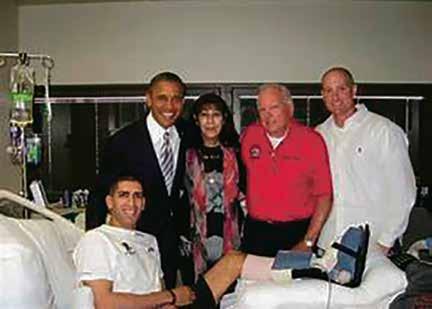Picture of “Flo” along with President Obama, his parents Klara and Larry Groberg and friend, Matthew Sanders while recovering at Walter Reed National Medical Center.