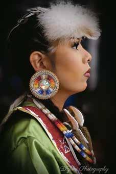 to hold.” Leanne’s art is not only about creating personal expression, but it’s about helping others find their voice, their strength, and a way forward. In the next five years, Leanne hopes to expand the scale and impact of her work. She shared she would like to take her miniature mandalas to the next level! Leanne dreams of creating large-scale pieces that continue to raise awareness and represent healing that invites people in. She also envisions leading presentations and creative workshops for those who are just beginning their healing journeys. Collaboration remains close to her heart, especially with her husband, who works with acrylics. Together, they’ve created pieces that they wish to share with the world. Beyond mandalas, Leanne also practices photography and is passionate about blending traditional imagery with contemporary dress and design to reclaim history and liberate the next generation. “I want my people to feel free to speak, to heal, to stop shaming each other for what they have endured. We’ve been silent for too long. We are all connected, and I hope my work reminds people that we can be one big family supporting each other through the hard stuff.”