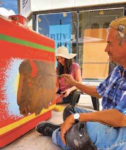 Ric returned to Gallup for a beautification project initiated by Archie Baca. Through the Business Improvement District, Archie invited Ric back to restore the area’s worn and vandalized trash cans & planters. Ric and his partner Monica Prieto have been painting tirelessly in the summer heat. Ric expressed his gratitude to Archie for believing in the project. Thanks to their efforts, downtown Gallup is now adorned with beautifully rejuvenated trash cans & planters, showcasing Ric’s and Monica’s artistry. If you find yourself downtown, take a moment to appreciate the unexpected masterpieces adorning the once-ordinary and/or damaged trash cans & planters.