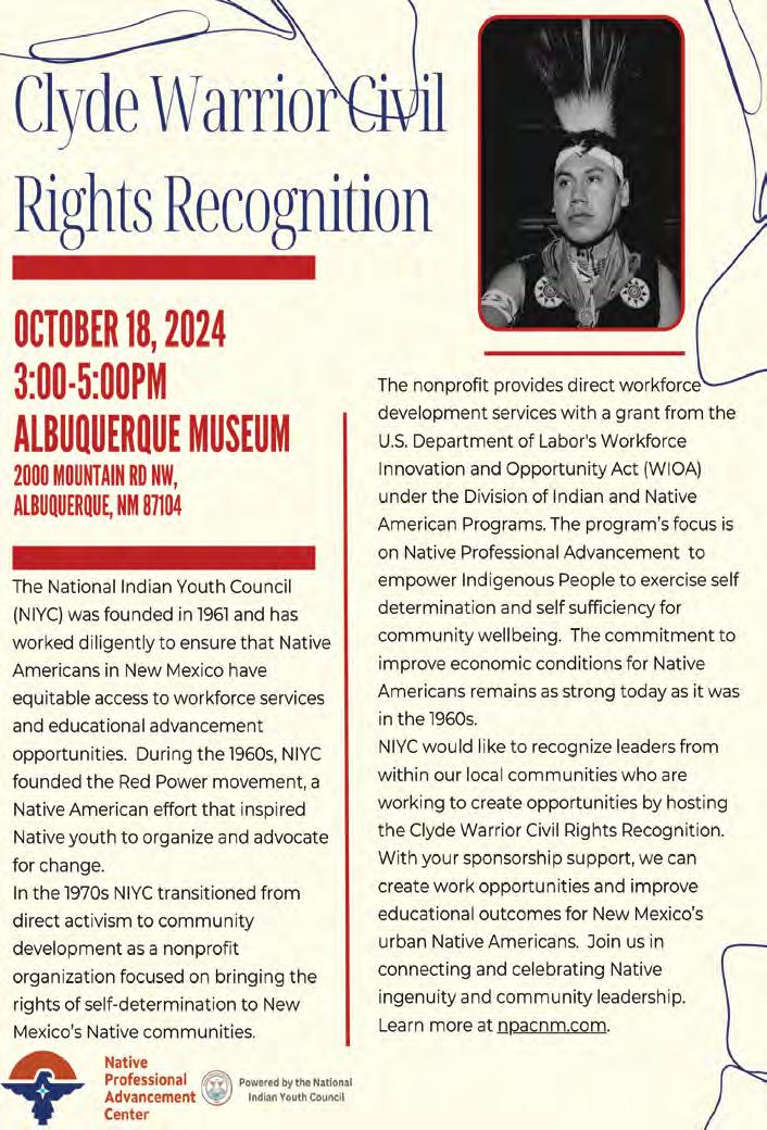 The National Indian Youth Council (NIYC) was founded in 1961 and has worked diligently to ensure that Native Americans in New Mexico have equitable access to workforce services and educational advancement opportunities. During the 1960s, NIYC founded the Red Power movement ' aNative American effort that inspired Native youth to organize and advocate for change.
