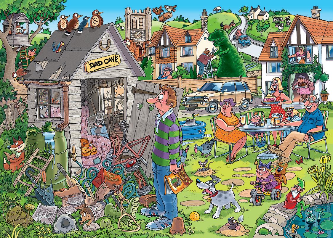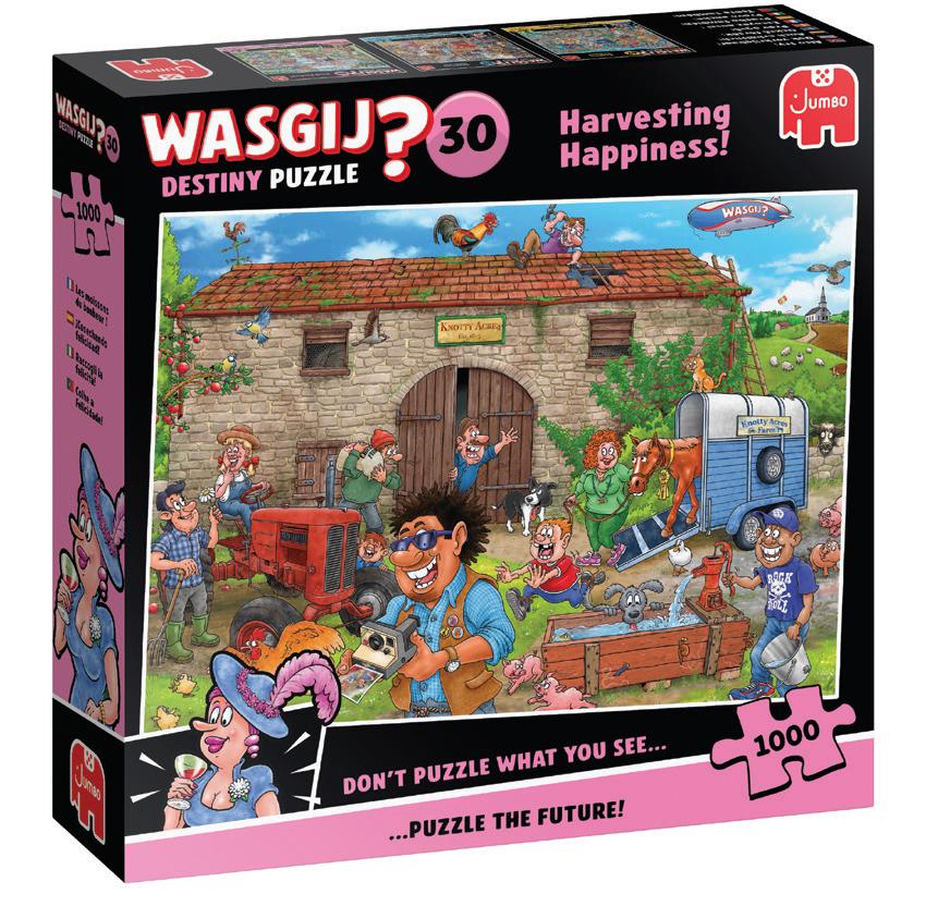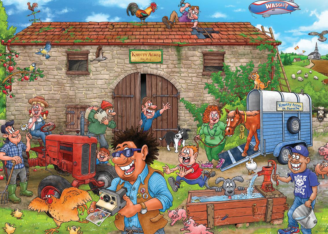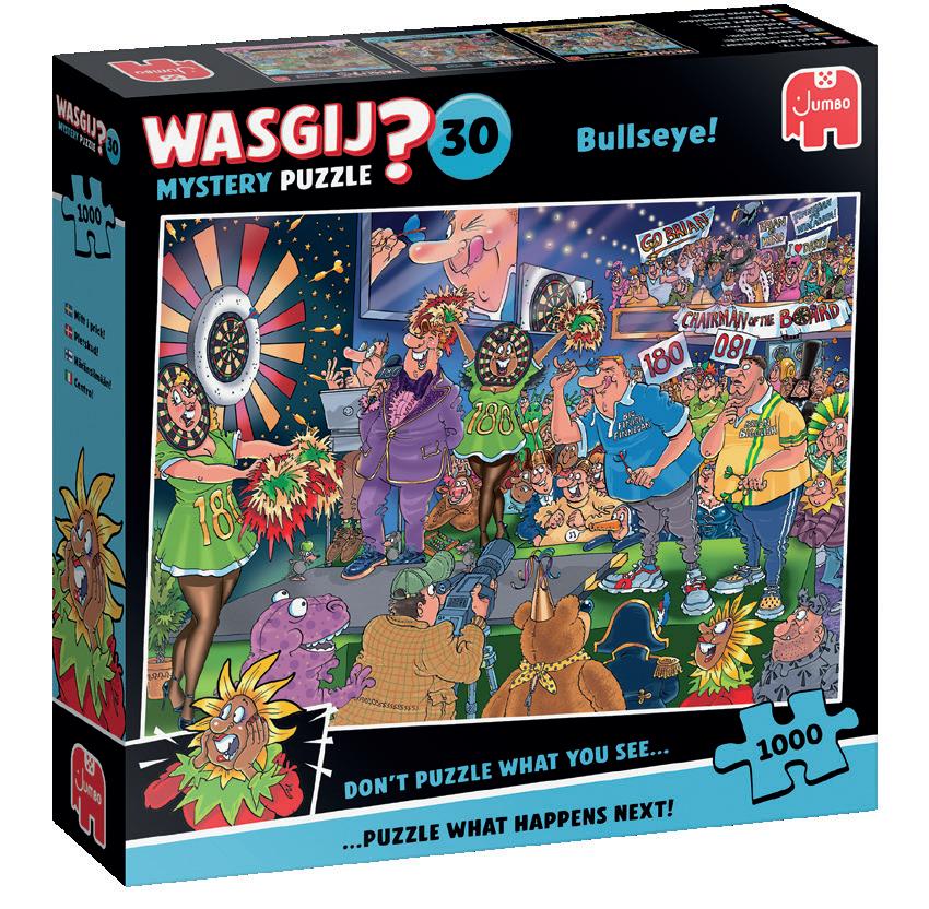 Wasgij is a unique puzzle concept that tests even the most enthusiastic puzzlers. With traditional jigsaws, the goal is to build the exact image shown on the box, but with Wasgij, you must create an entirely different picture. Although we give you a few clues, Wasgij challenges you to use your imagination as you piece together the hilarious ‘solution’ to the image on the box!