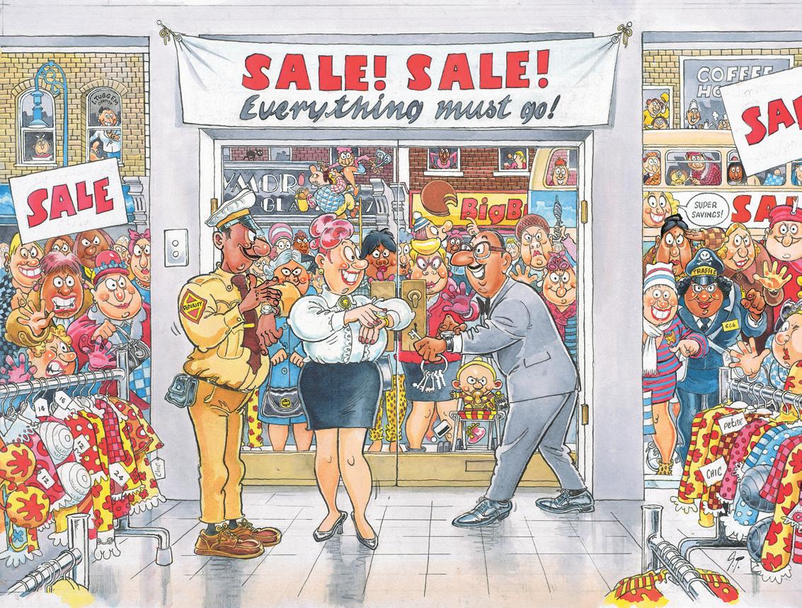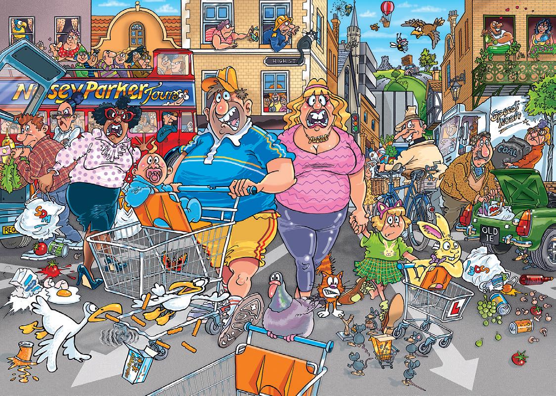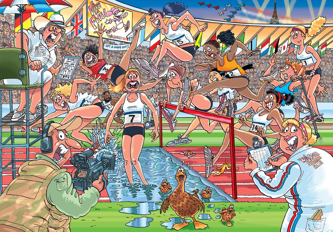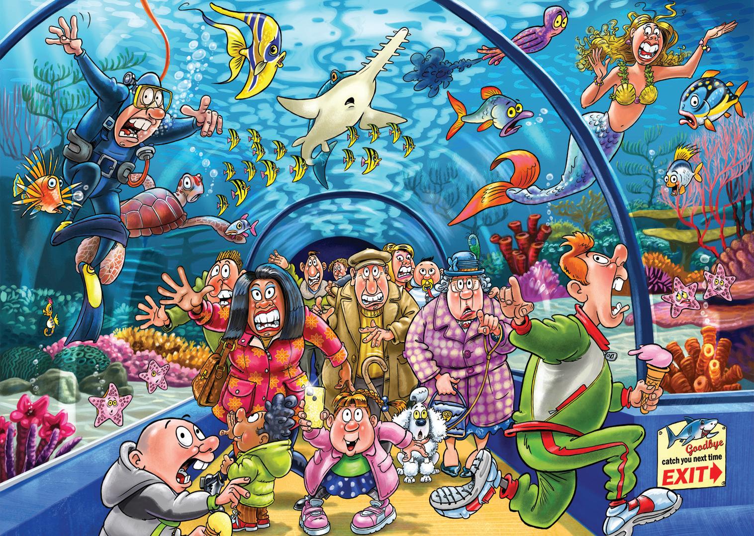 Wasgij is a unique puzzle concept that tests even the most enthusiastic puzzlers. With traditional jigsaws, the goal is to build the exact image shown on the box, but with Wasgij, you must create an entirely different picture. Although we give you a few clues, Wasgij challenges you to use your imagination as you piece together the hilarious ‘solution’ to the image on the box!