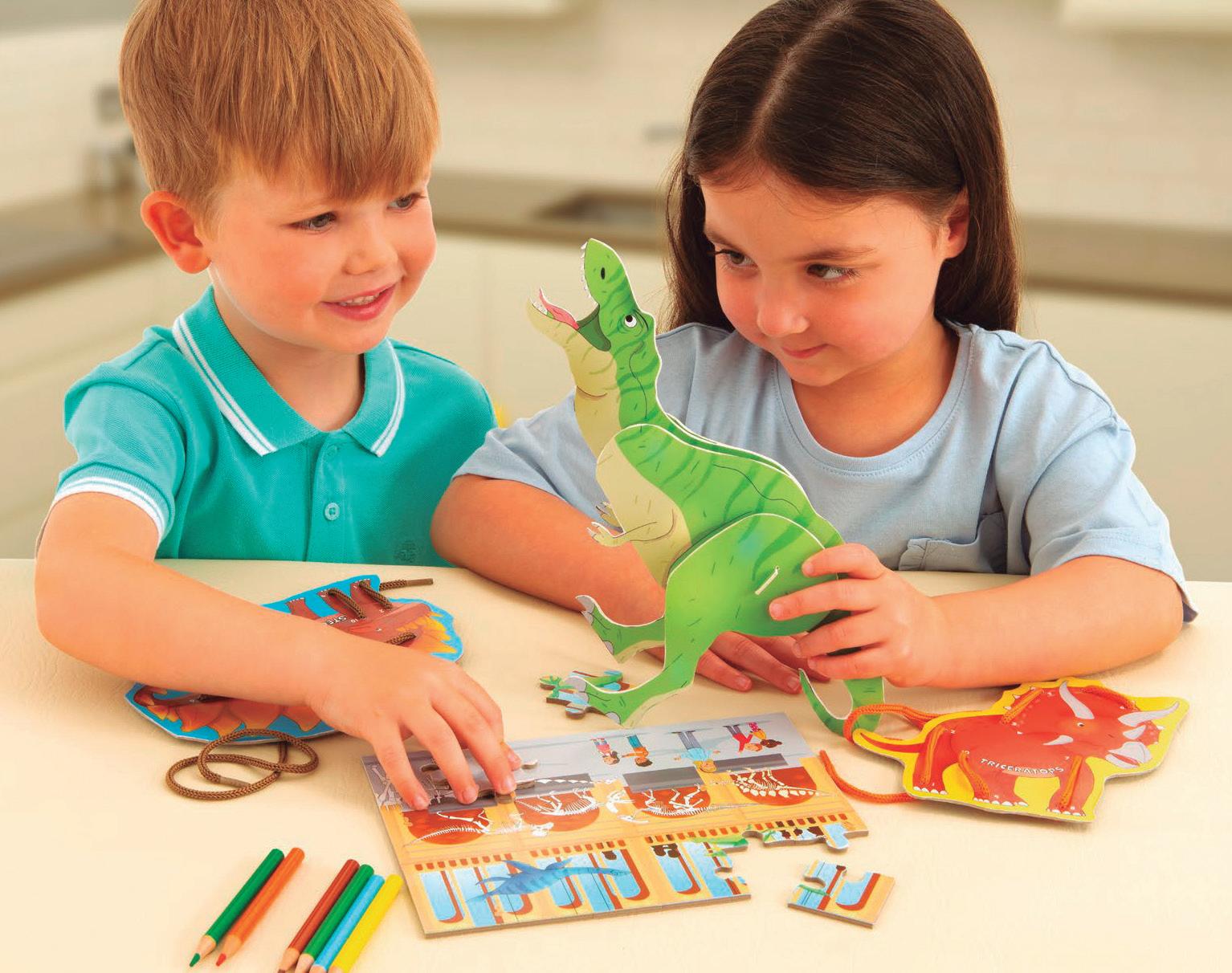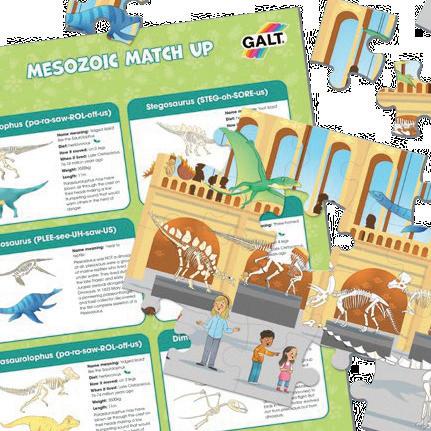 • Featuring a timeline colour-in model to build, Stegosaurus and Triceratops lacing cards, a game with Dinosaur stand-ups and sticker pictures to discover more about dinosaur bones and what dinosaurs liked to eat.