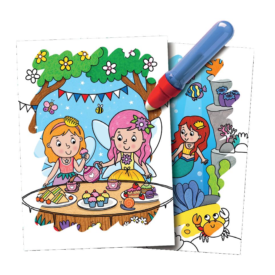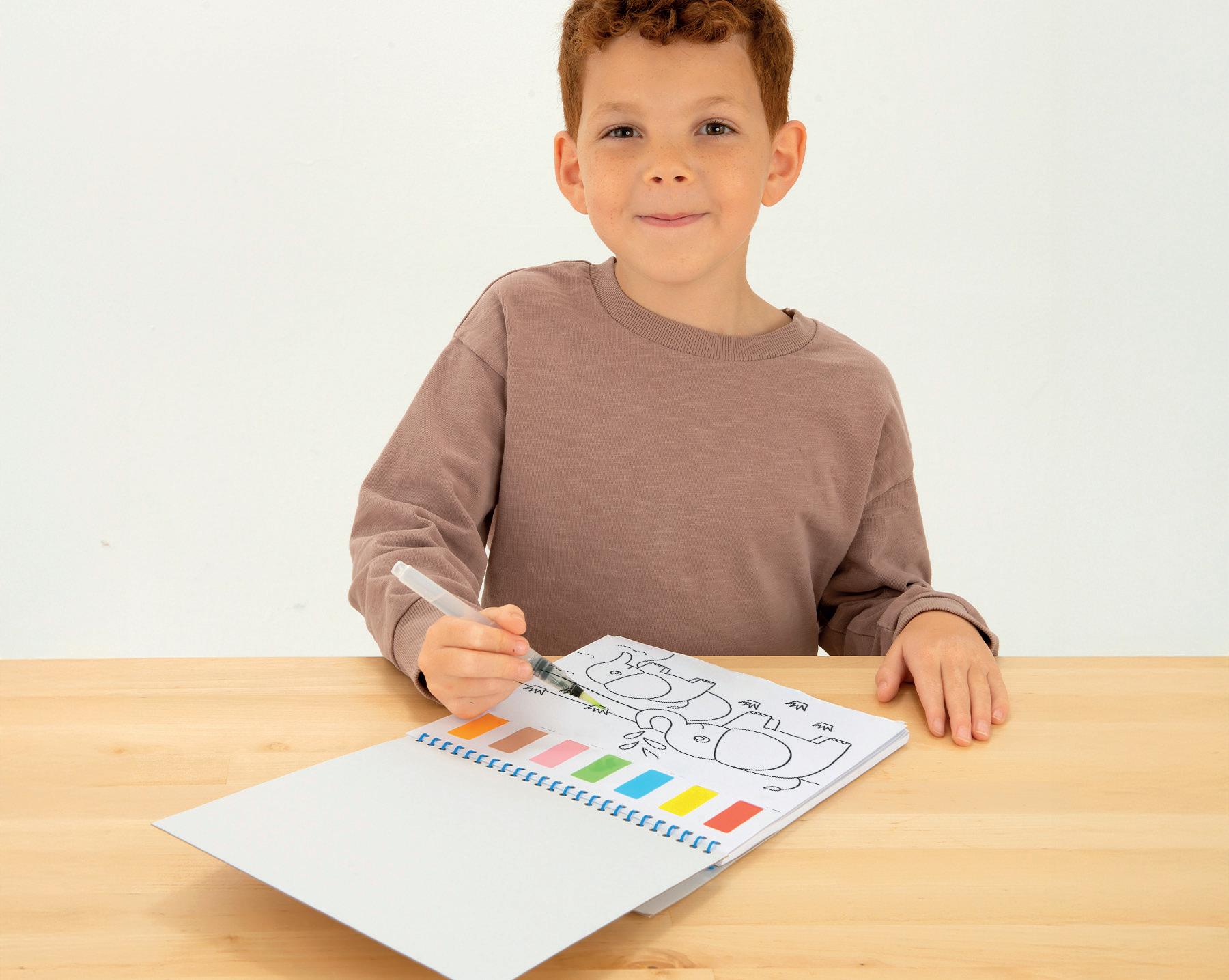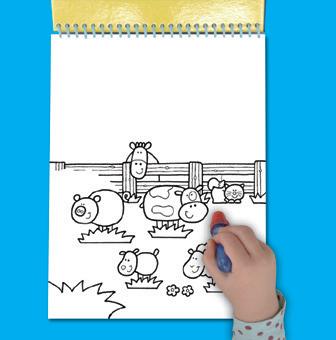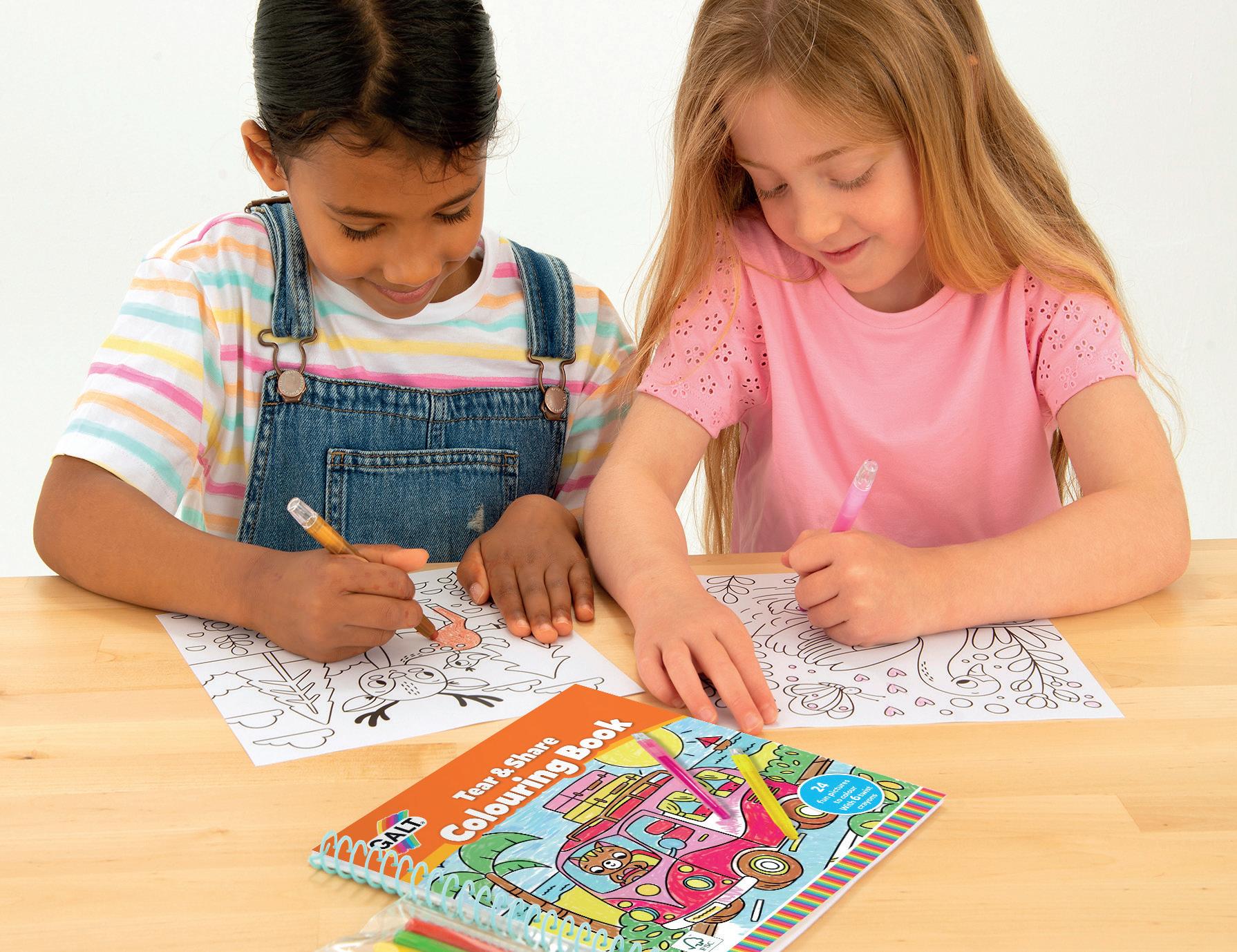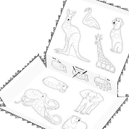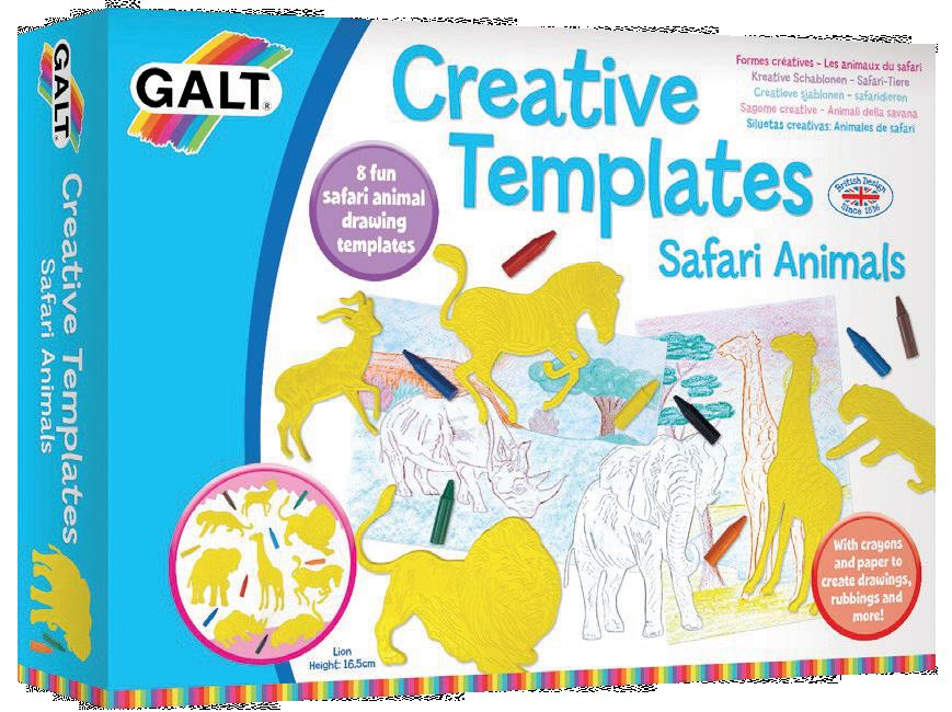 Contents: 8 templates, 20 sheets of white paper, 8 crayons in assorted colours and guide.