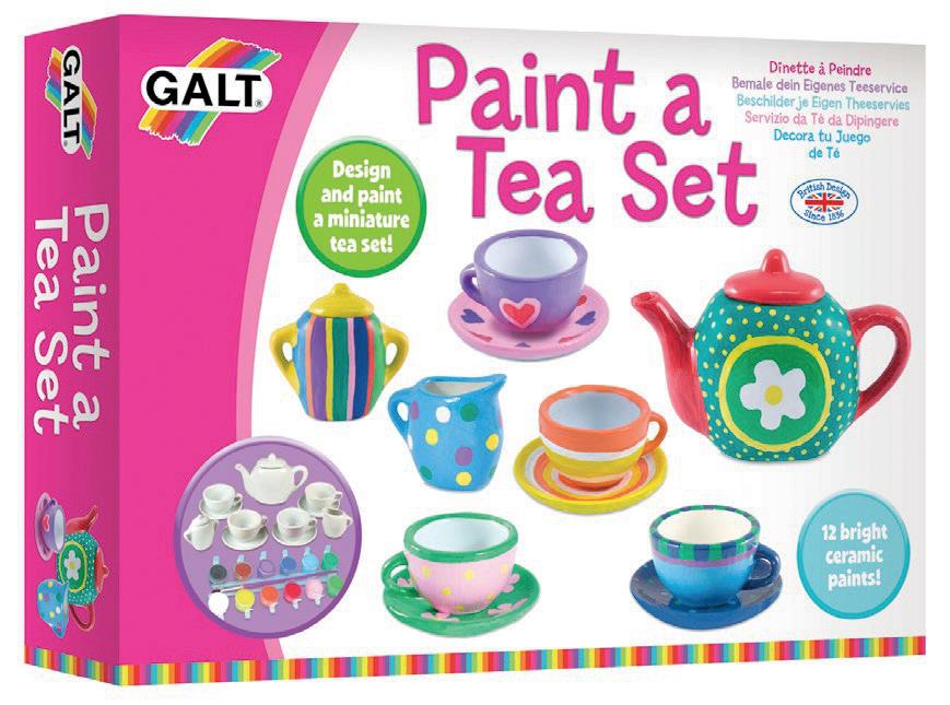 • Children can follow the designs on the box or create their own unique set. Contents: white ceramic miniature tea set comprising teapot, milk jug, sugar bowl, 4 cups, 4 saucers plus 12 x 3ml ceramic paints, paintbrush and guide.