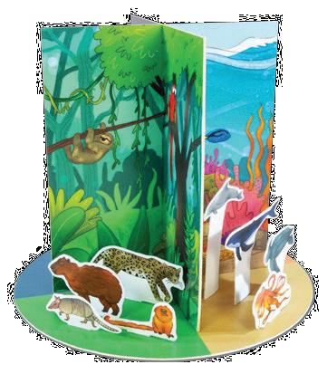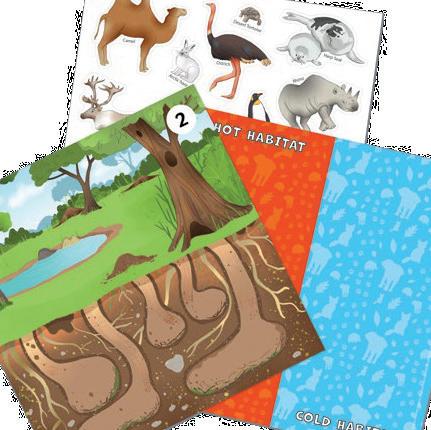 • Featuring a 3D scene of 4 habitats around the world, colour-in animal food chain with pencil crayons, 2 game boards with 18 playing cards and 2 sticker picture boards with stickers to group animals and learn where they live in the world.
