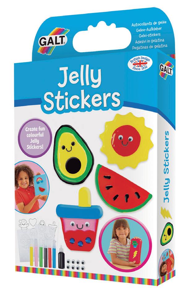 A vibrant sticker-making set designed for creating customisable jelly stickers with seven bright colors and fun accessories like googly eyes. This set provides a unique addition to craft ranges, offering interactive play that encourages creativity and ne motor skills development, perfect for expanding your creative play and crafting product lines.