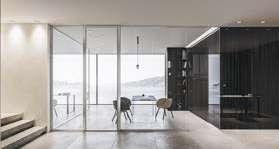 Gamme de cloisons intérieures pour bureaux qui se fondent intégralement encastrés dans le plafond et le sol. Disponible en option avec montage semi-encastré.