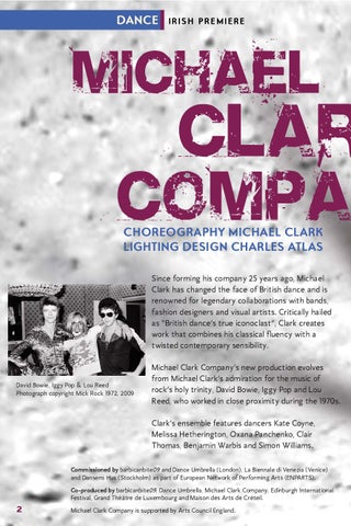 COMPA CHOREOGRAPHY MICHAEL CLARK LIGHTING DESIGN CHARLES ATLAS Since forming his company 25 years ago, Michael Clark has changed the face of British dance and is renowned for legendary collaborations with bands, fashion designers and visual artists. Critically hailed as “British dance’s true iconoclast”, Clark creates work that combines his classical fluency with a twisted contemporary sensibility.