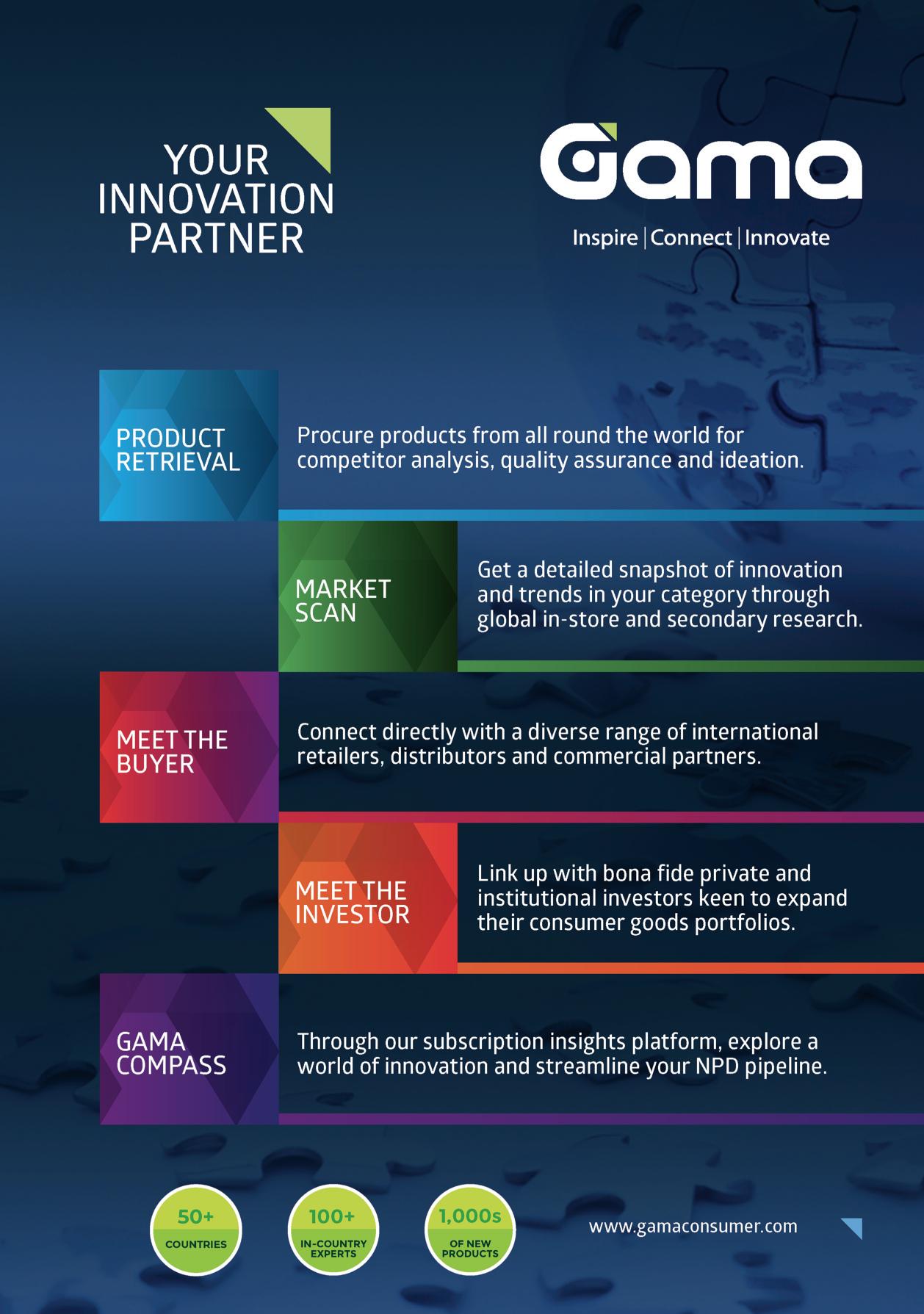 All information in this publication is copyright Gama Unless where stated or attributed, Gama retains copyright and all other intellectual property rights on all text and graphic images in this publication Reproduction, distribution or transmission by any means without the prior permission of Gama is prohibited All rights reserved