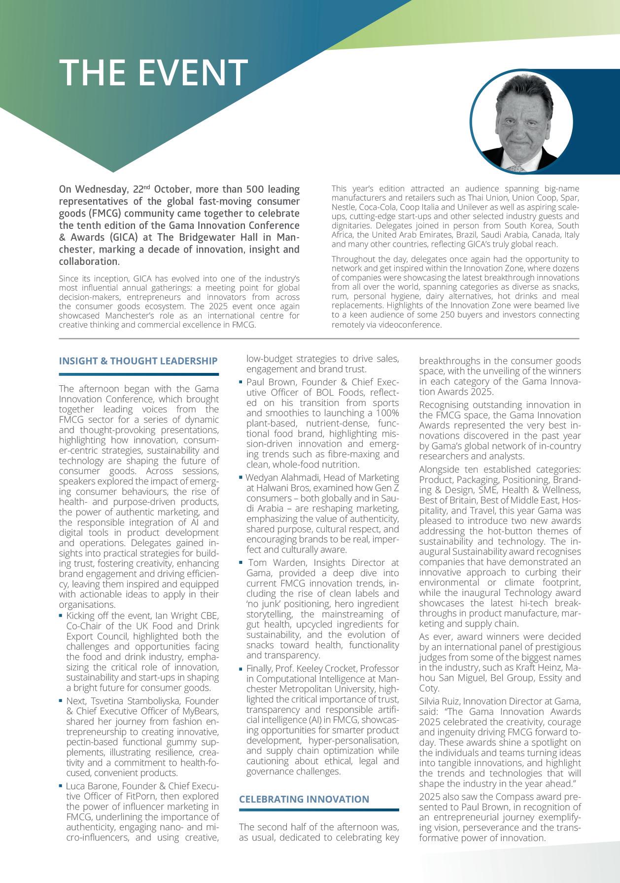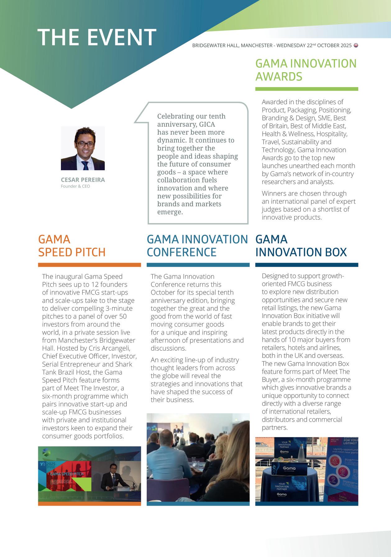Indeed, as we celebrate this notable landmark, GICA has never been more dynamic Entering the event's 11th year, we remain committed to providing a unique space where the world’s most innovative minds can connect, share insights and celebrate the brilliance that defines the global FMCG sector