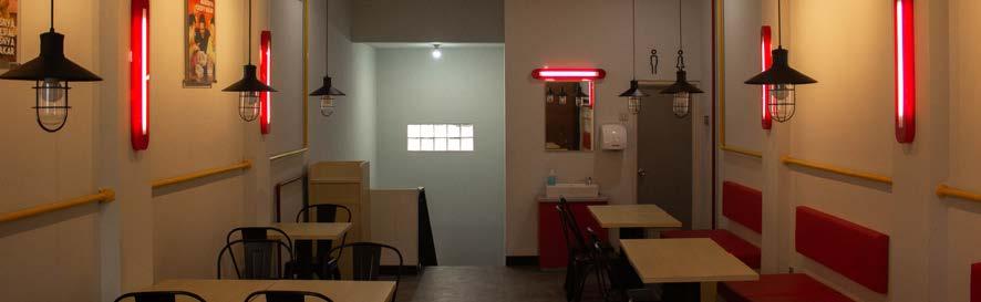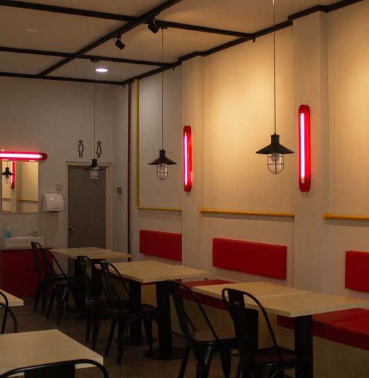 Two storey building with only 80m2 in total was a big challange to deisgn a proper kitchen and dining area. The use of red and yellow as the side colors was inspired by the company’s branding colors. The acshier area is the main feature of the store when users enter the outlet.