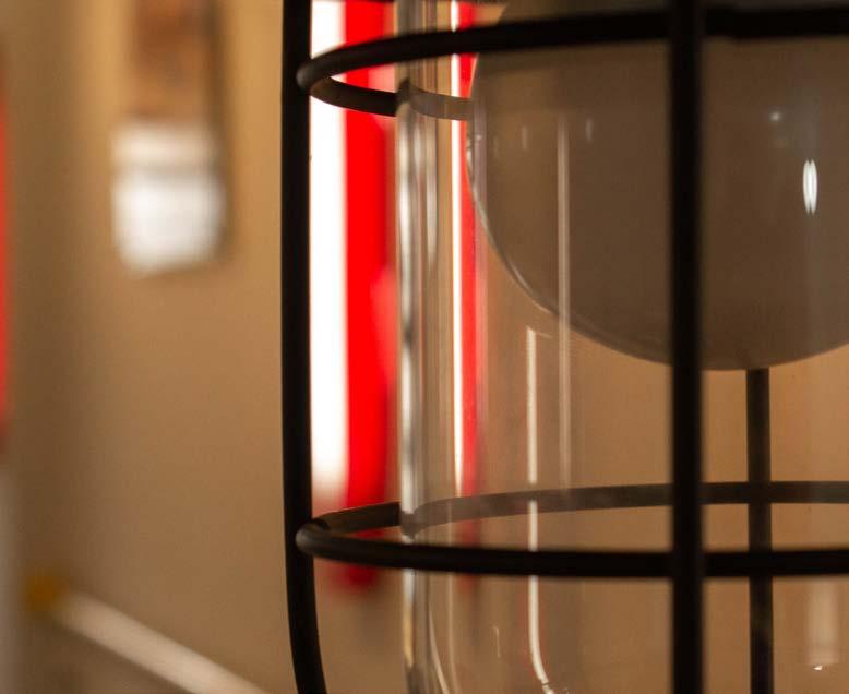 The overall design uses natural material; timber, exposed brick, and linen, combined with industrial material such as steel, and aluminum. This combination could gives natural feel yet having modern looks form its shapes.