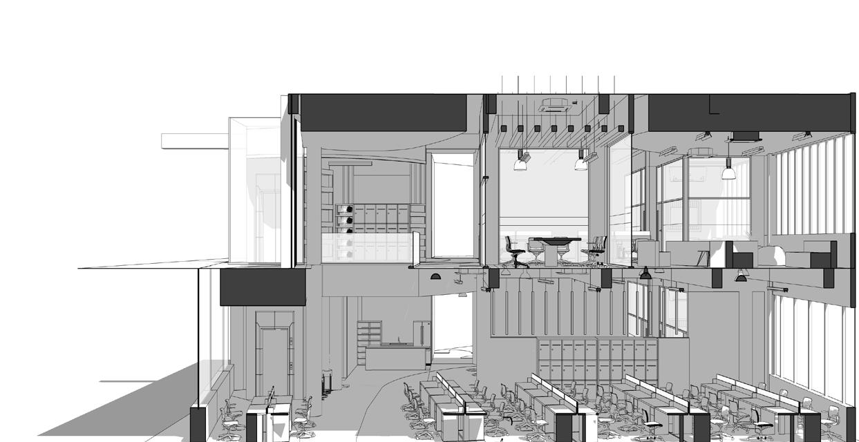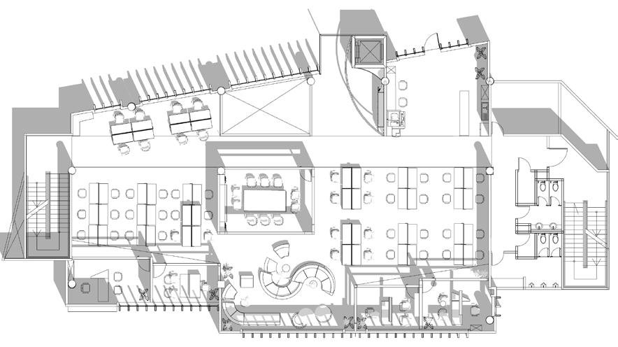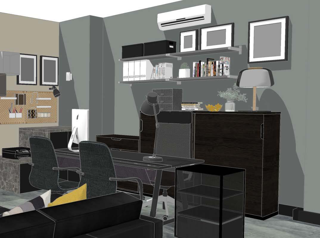 This project is designing the working space on second floor on shop buildin. There two big windows towards the room, and stairs to access the first and third floor.