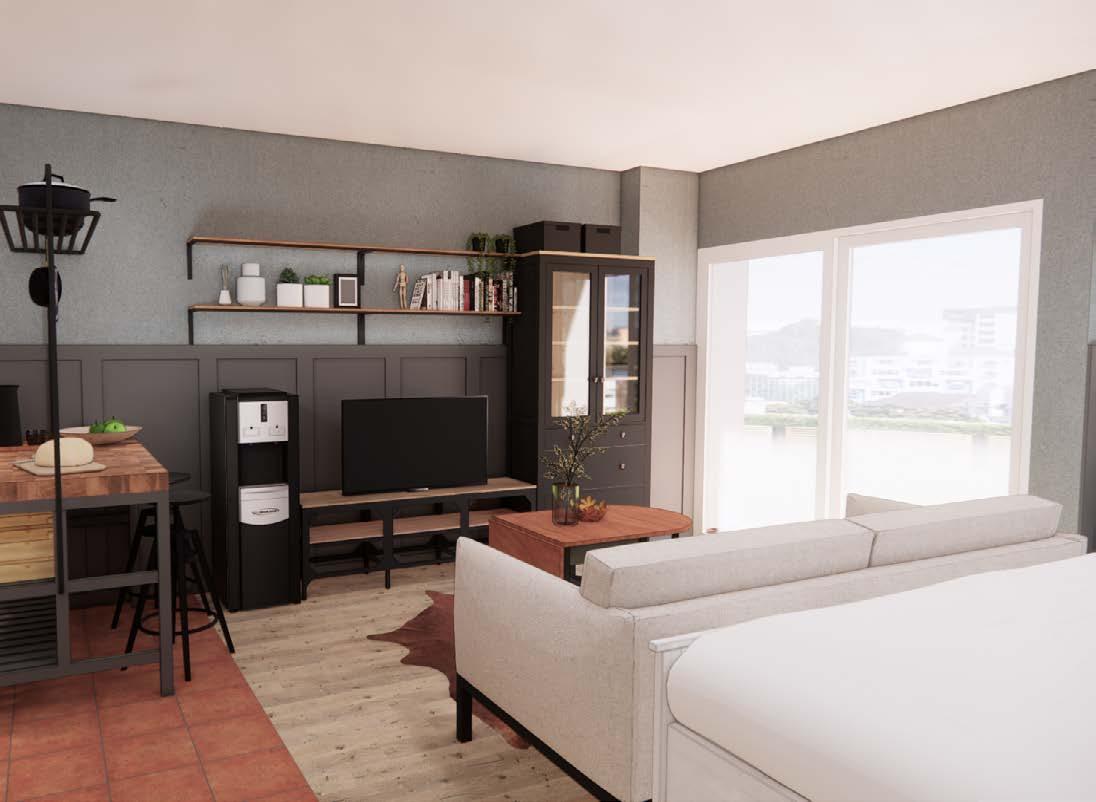 This project is located in Surabaya, East Java. Originally it was a two-bedroom apartment, but the client would like to change the room into a studio apartment.