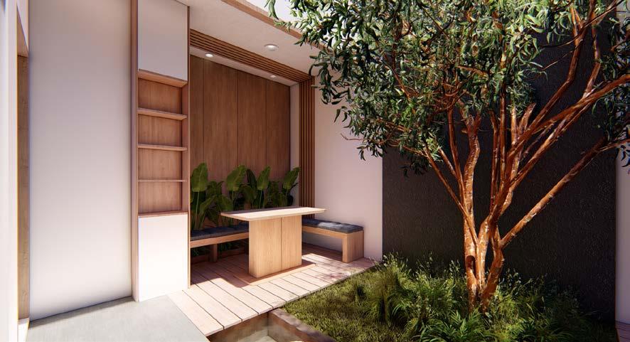 The big change was made in the backyard, where there is a need of more natural space. This results in bringing the floor decking and pond to give audial and aromatic feels.