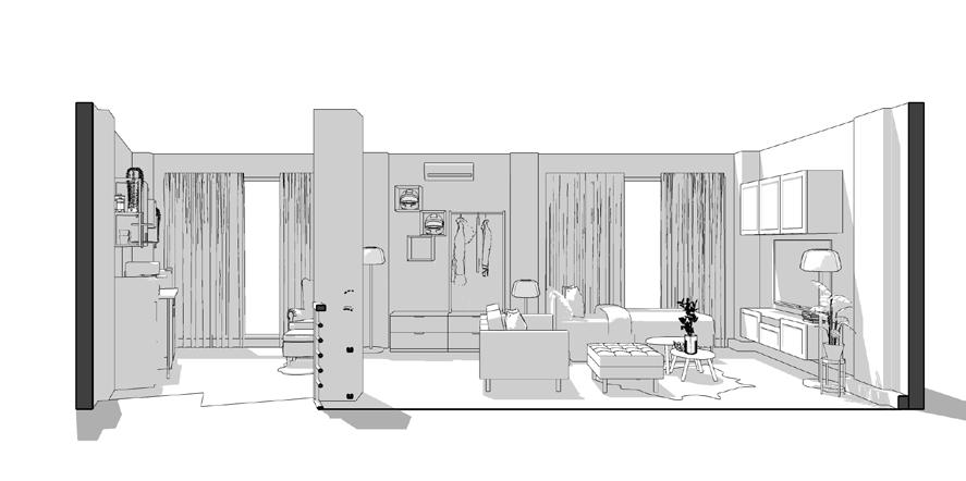 Working from home is also a main activity for the father. Private but comfortable open working space is important for him to do his work while interacting with the rest of his family.