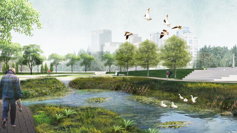 Penanganan problema banjir di kawasan Dharmawangsa-Pulo, tim perancangan kawasan memberikan solusi melalui Rekayasa RTH & RTB Waduk Dharmawangsa-Walikota dengan menaturalisasikan bendungan air dan menerapkan sistem long storage yang menghubungkan 2 waduk.