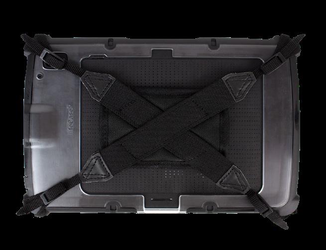 • Accommodates the tablet’s hand strap or magnet mount attachment