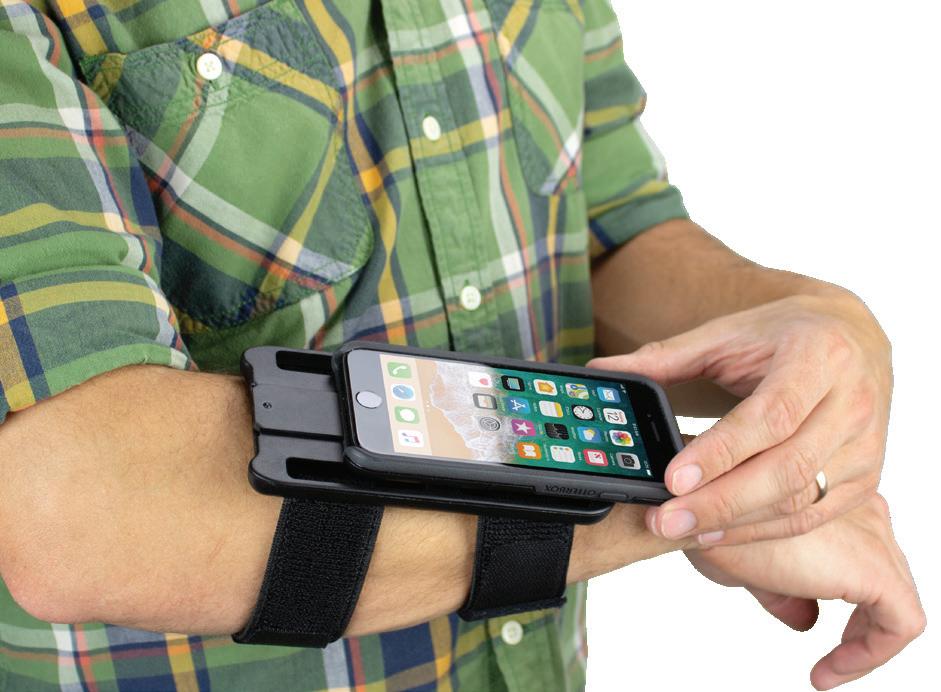 The ModuFlex Forearm Cradle for OtterBox uniVERSE Smartphone Cases gives mobile professionals a secure, comfortable way to keep their device close—without tying up their hands. Worn on the forearm with adjustable elastic straps, it positions your phone for quick interaction, scanning, or data entry while allowing full range of motion for other tasks.