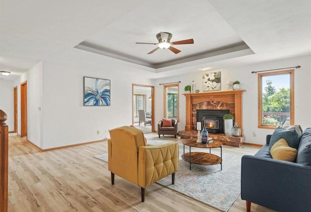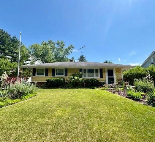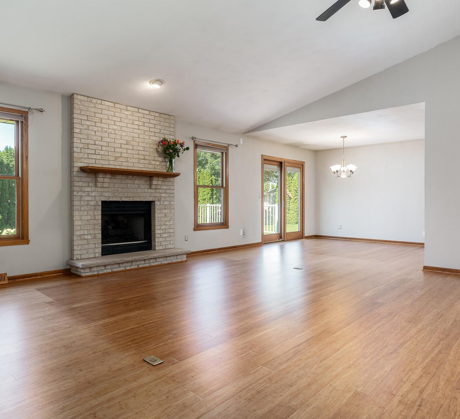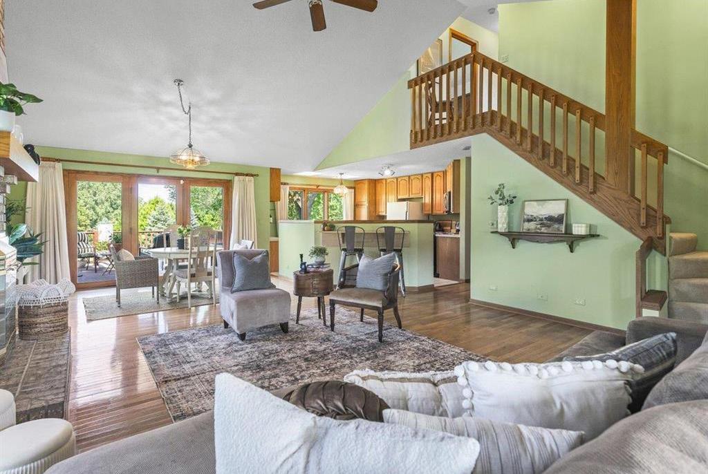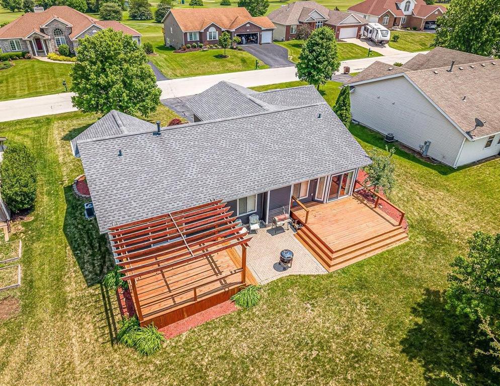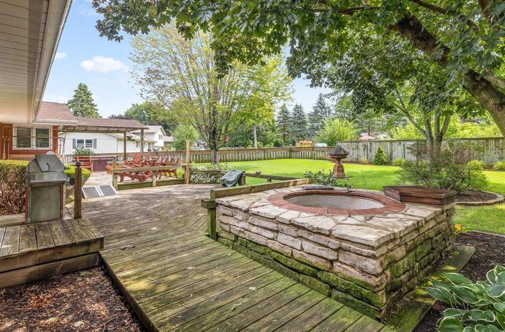 Sharp, open concept ranch with room to breathe! Inside, you will find the impressive great room with soaring ten foot cathedral ceilings, a brick gas log fireplace, and newer Bamboo flooring. Kitchen features an abundance of cabinetry with convenient pullouts, expansive counter space, and a breakfast bar. Enjoy the outdoors from your 12x13 composite deck overlooking a lush yard filled with perennial gardens and vibrant wildflowers. The home is perfectly positioned for privacy with a wall of mature arborvitae and serene views of green space from nearly every window. All this in a peaceful small-town setting with easy access to shopping, restaurants, top-rated schools, and Winnebago Park District youth programs.
