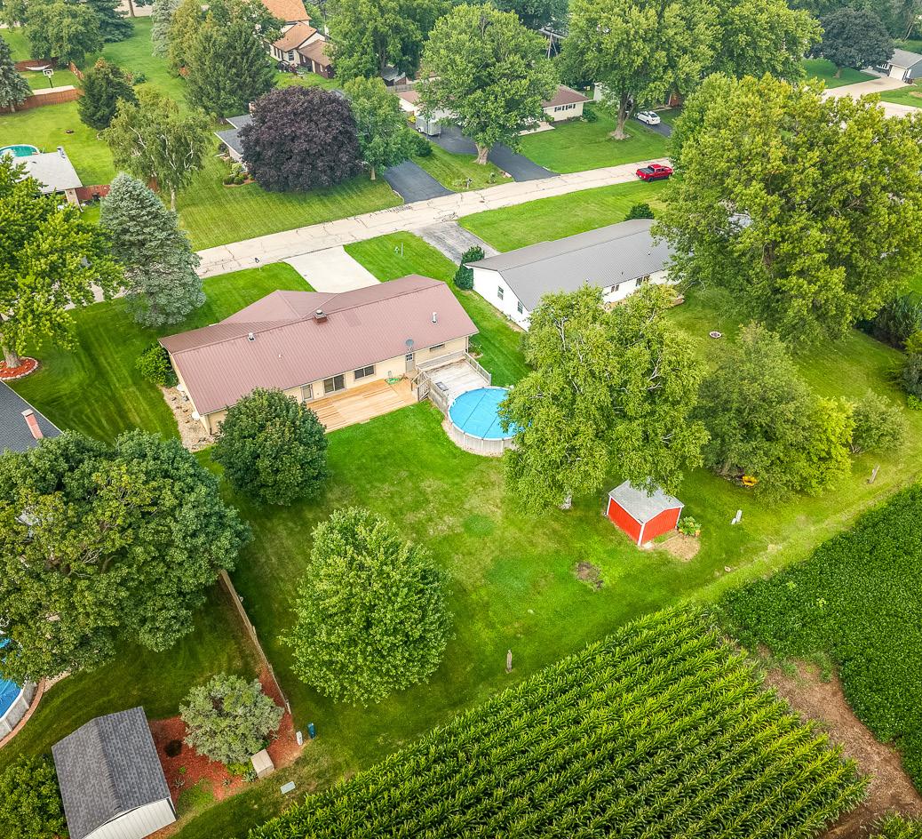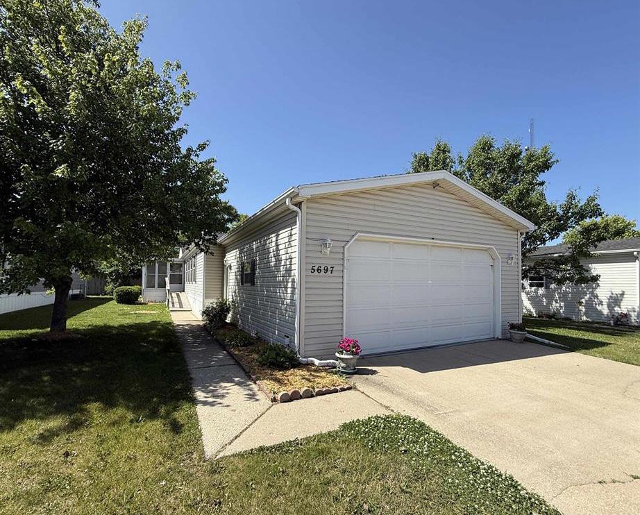 Charming ranch-style home in Winnebago featuring three bedrooms, one full bath and two half baths with a two car attached garage. Entertain in the spacious eat-in kitchen or living room where the large windows let in lots of natural light. A sliding door offers more sunlight and it opens to the sprawling back deck. You will find an above-ground pool, perfect for summer fun. The primary bedroom includes an attached half bath. The finished basement offers a rec room, utility room, and additional storage. Backyard faces a cornfield for added privacy.