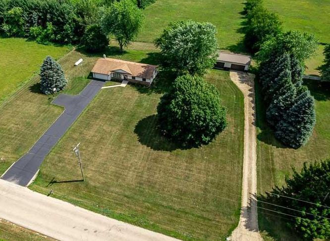 brick/vinyl, ranch with a 24x48 Morton Building on five scenic acres zoned ag in Winnebago School District! Enjoy country living with an inviting living room, oversized window, open dining, and eat-in kitchen with ample cabinetry and pantry. Spacious main floor family room features a vaulted ceiling, stunning floor-to-ceiling stone fireplace, built-ins, and sliders to a mature, beautifully groomed yard. Full basement ready for your plans. Seeing is believing!