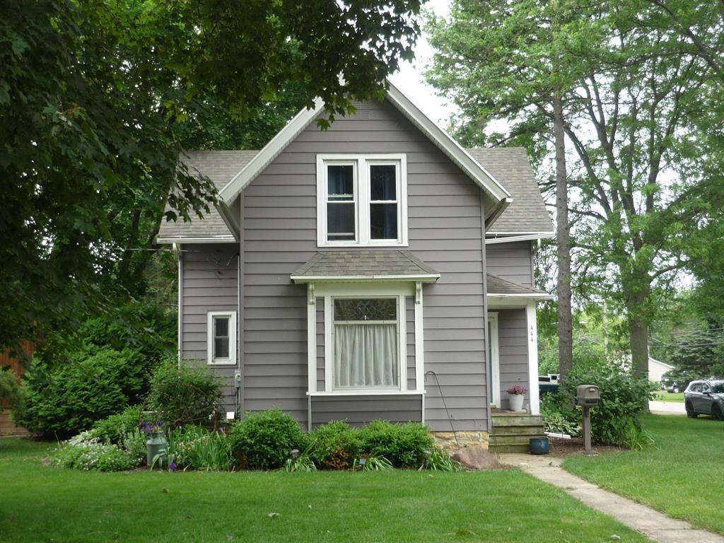 This classic and character-filled residence offers inviting living space on two spacious lots. A true gem for hobbyists and car enthusiasts alike, this property features a heated 25x29 garage with space for three+ vehicles, featuring front overhead doors and an additional rear overhead door. Inside, discover charm and ambiance throughout, with abundant natural light pouring through large windows, natural woodwork, tall baseboards, hardwood floors, and nine foot ceilings on the main floor, creating an airy appeal. The walkup attic is perfect for storage or transforming into a creative studio or entertainment space! The walkout basement offers convenient outdoor access. All this, just minutes from I-39 for an easy commute.