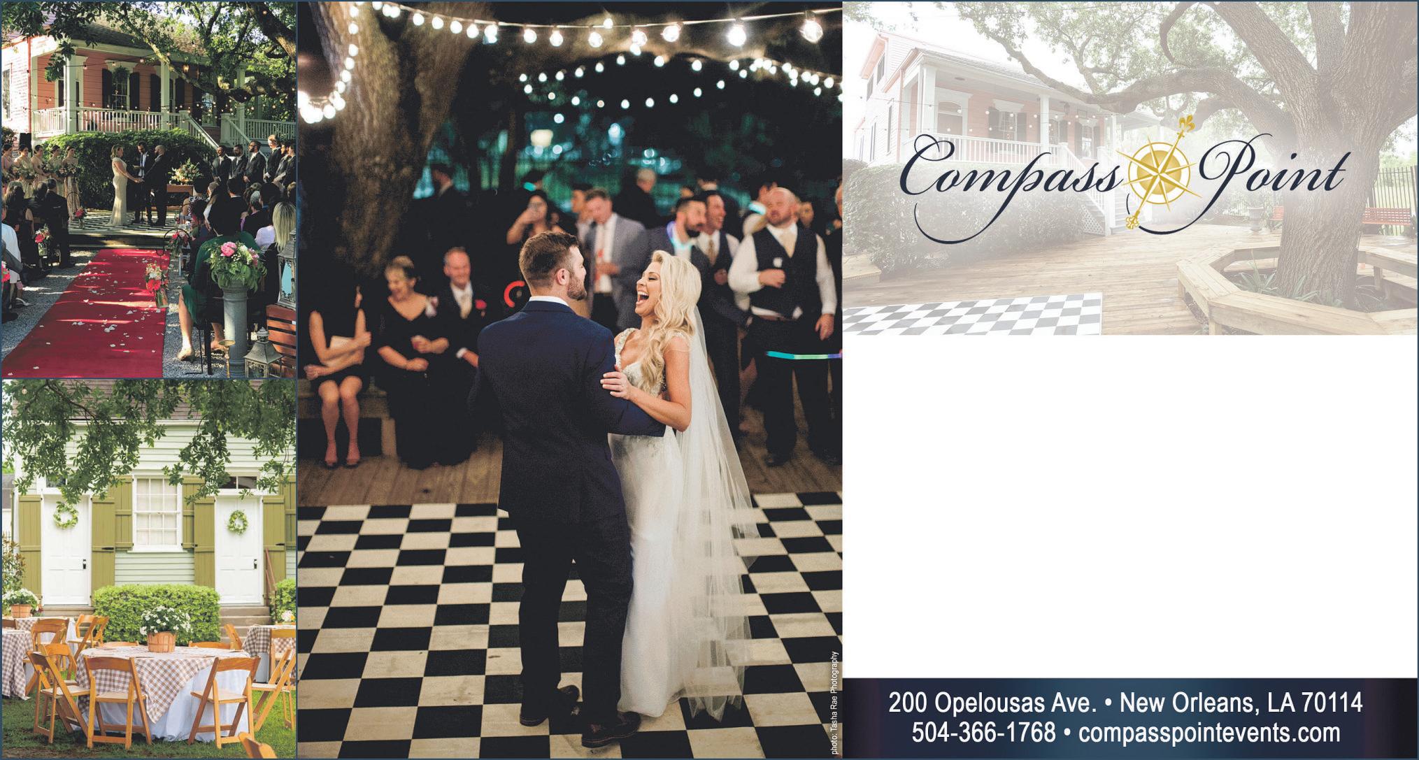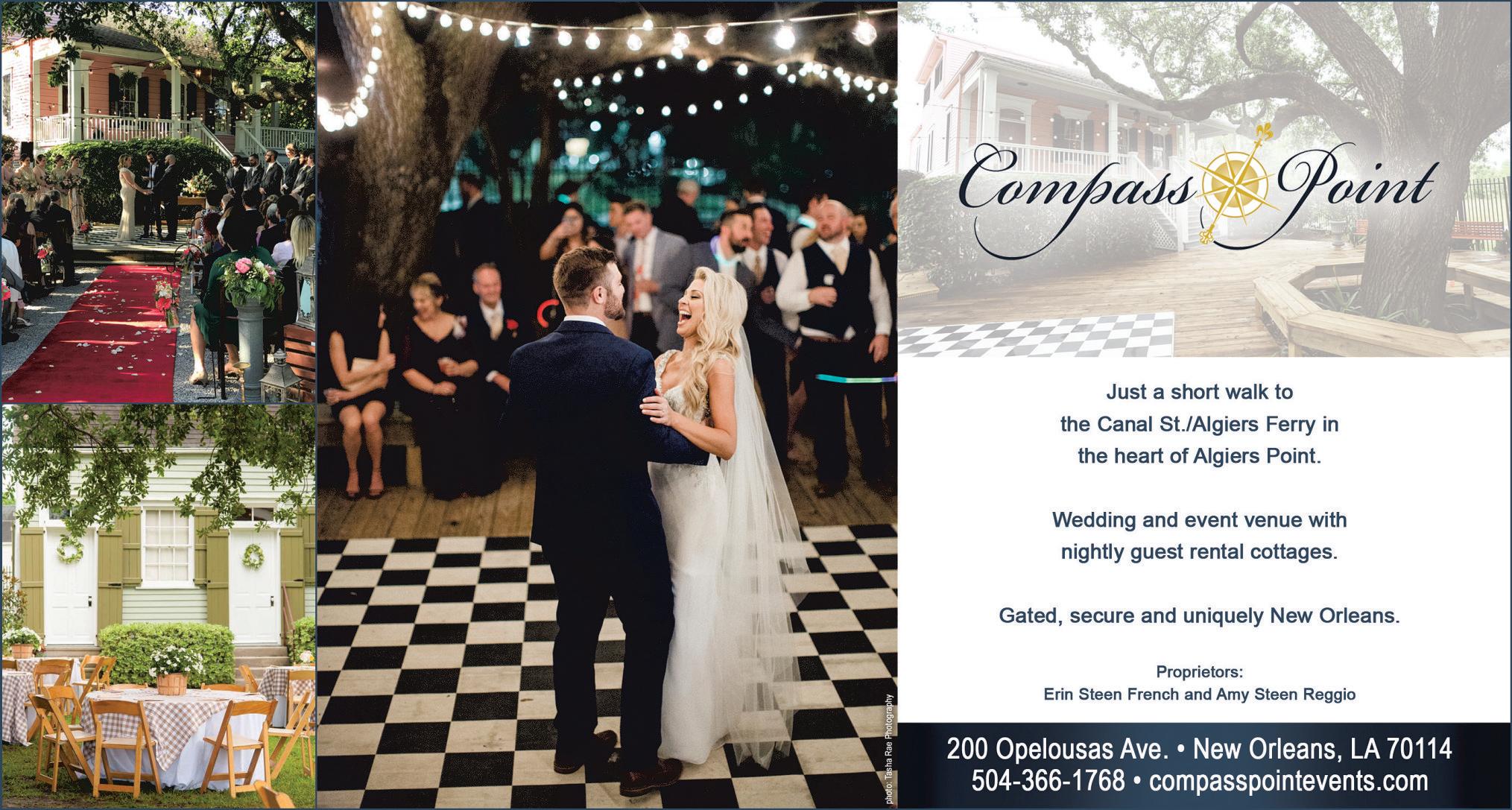 Letushelpyou createaonceinalifetimeexperiencefor youonyourmostspecial day. We will work with youmaking your dreams andideascometolifethrough your event. Compass PointEventscan accommodateyourwedding under ourmajesticoakscompletewithanoutdoor dance floor andstring lightsoranelegantaffair in ourpicturesque mansion.” www.compasspointevents.com.