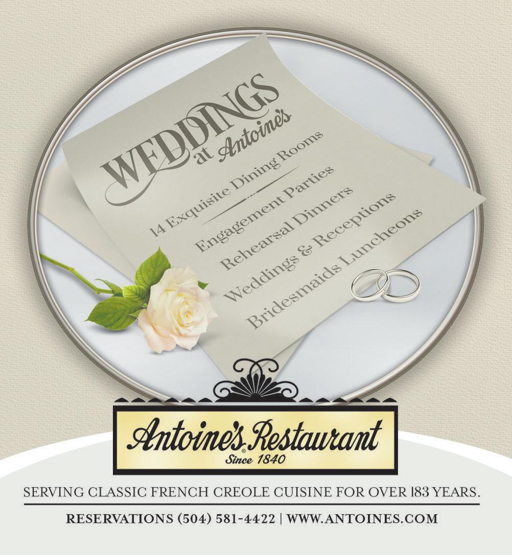 Antoine’sRestaurantoffersaromanticsetting for your NewOrleanswedding.Choosefromavariety of private dining roomstoaccommodate receptions of allsizes andtocreatememoriesfor yearstocome. Theirexquisite private roomsaccommodate from 14 to 300, with some roomsfeaturing abalcony overlookingSt. LouisStreet. Antoine’slooks forward to workingwithyou to plan everyaspectofyour special day!