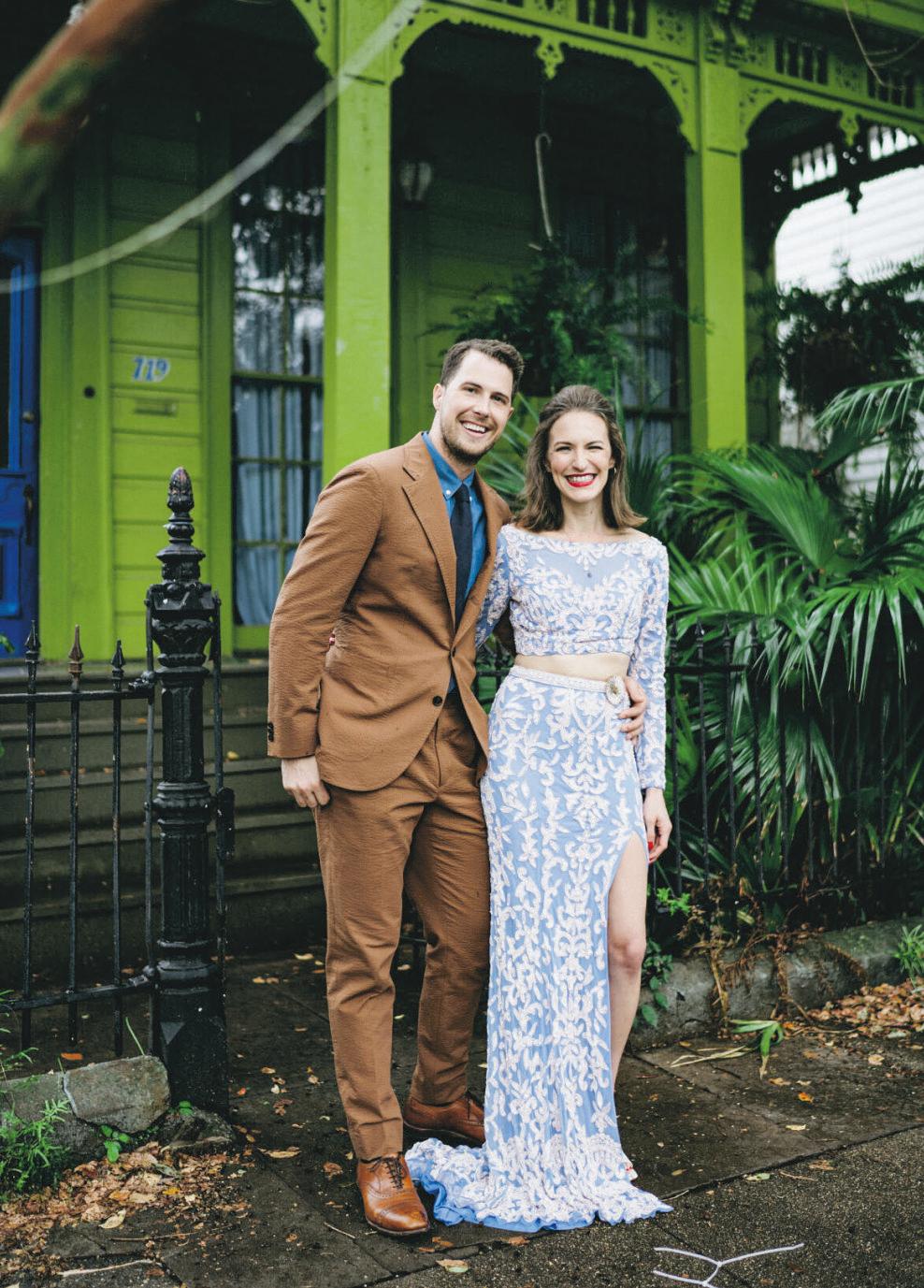 Theychosetohavetheceremonywithabout50guestsatTheTigermenDen,a formerBywatercornerstoreturnedcommunityspace,wheretheyputupphotosof familyandfriendstogivealiving-roomfeel.“Wewantedittofeellikeitwaseveryone’s specialday,”Neelsays