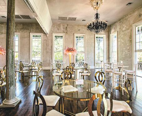 Locatedinthe charming Garden District,was first establishedin1866.153 yearslater,thishistoricbuilding wastransformed as an elegant,upscale venue perfectfor an arrayofevents. Thepropertyincludes approximately 4,000 square feet of indoor spaceand awraparound porch overlookingMagazineSt. foranother 1500 square feet.Featuring high ceilings, ornate chandeliers, columns andoriginal fireplaces. Theexperienced team offers weddingparties awarm, NewOrleans-stylewelcome,and have hosted everything from grand gala receptions to intimatewedding dinners. Thevenue is also pet-friendly andwillwelcome canine gueststojoinincelebrations 2604 MagazineUpper N.O.L.A70130,504-858-0226, www.thegalleryonmagazine.com