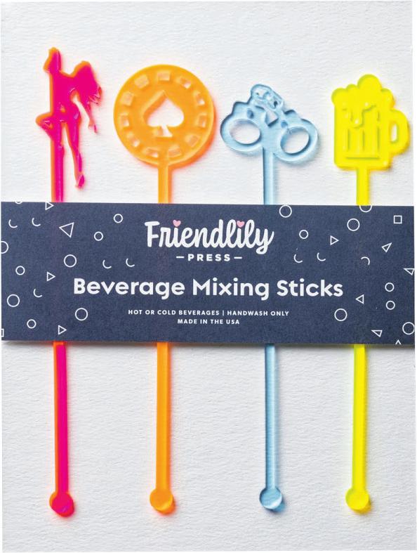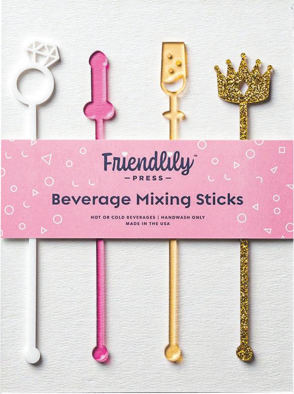 Bachelorette party drink stirrers | $14eachfromLionheartPrints(618ChartresSt.;3312 MagazineSt.,504-267-5299;lionheartprints.com)